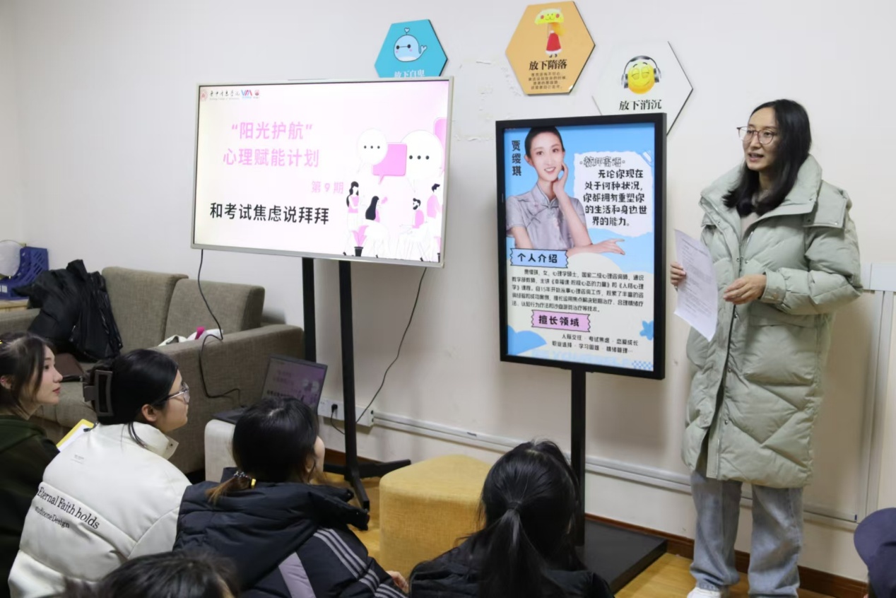 为帮助同学们缓解考试焦虑,以积极心态应对期末考试。近日,通识教学部的贾缨琪老师开展了“幸福课:积极心态的力量”第二课堂——“阳光护航”心理赋能计划第9期活动,本次活动以“和考试焦虑说拜拜”为主题,为同学们带来了一场心灵的放松之旅。