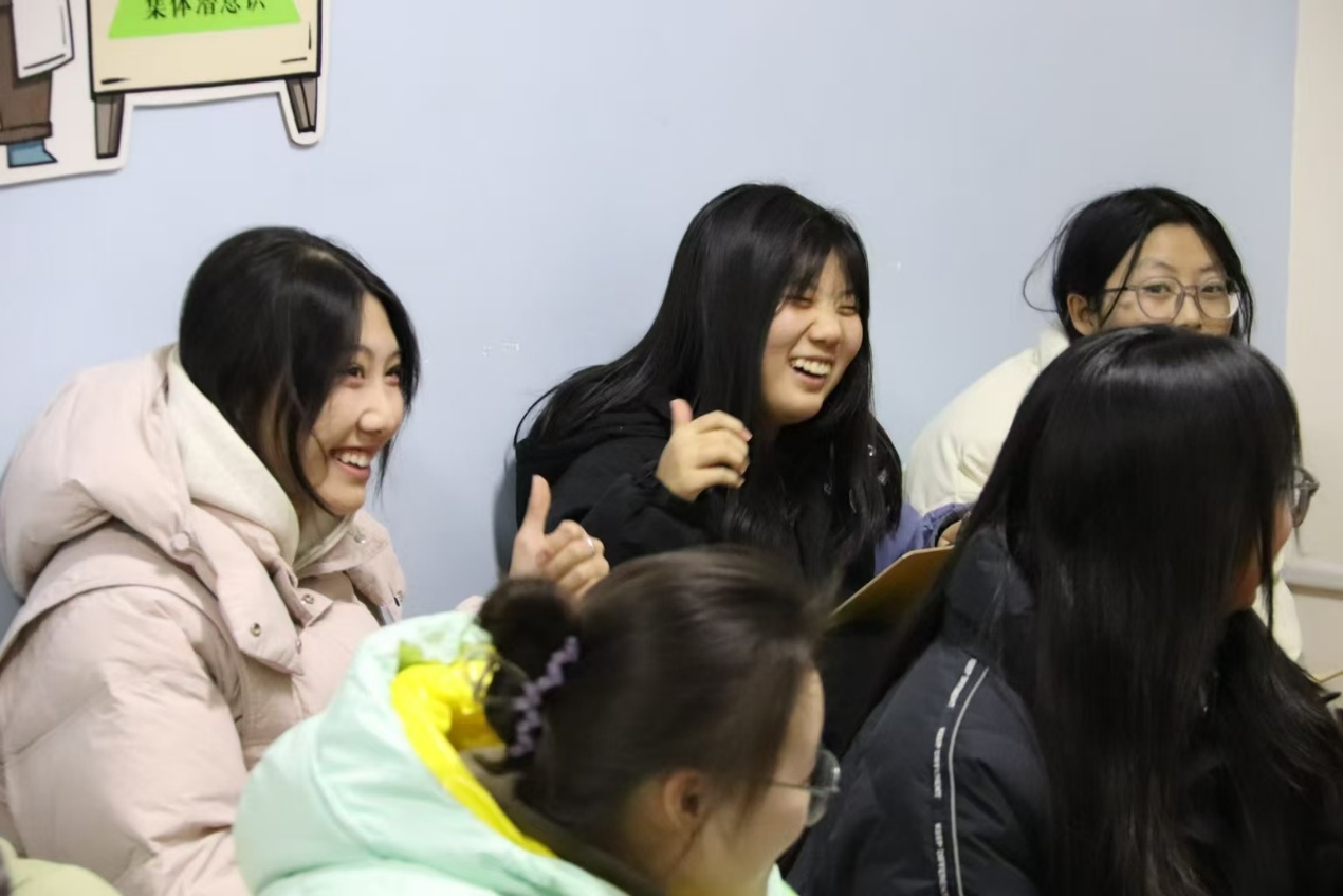 而后,贾老师将在场的同学们分成了四个小组,让每个小组的同学一一分享自己应对考试焦虑的方法,并推选小组代表分享了自己的考试经验。她们讲述了合理安排复习时间、克服紧张情绪以及应对突发状况的方法,让同学们对即将到来的考试也多了一份淡定与从容。