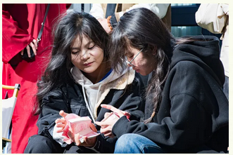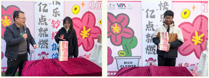 随着此起彼伏的"砰砰"声,金蛋盲盒接连绽放惊喜。一场别开生面的金融嘉年华正在上演。在“铲钞票”竞技场,同学们化身“黄金右手”,展现出专业“铲手”的风范,仅仅30秒,就得到50张“钞票”,轻松刷新当日纪录,成为全场焦点。另一边,工作人员扣动扳机,数百张“钞票”从枪中喷射而出。同学们沉心静气,凝视目标,眼疾手快,上演现实版“财富争夺战”。