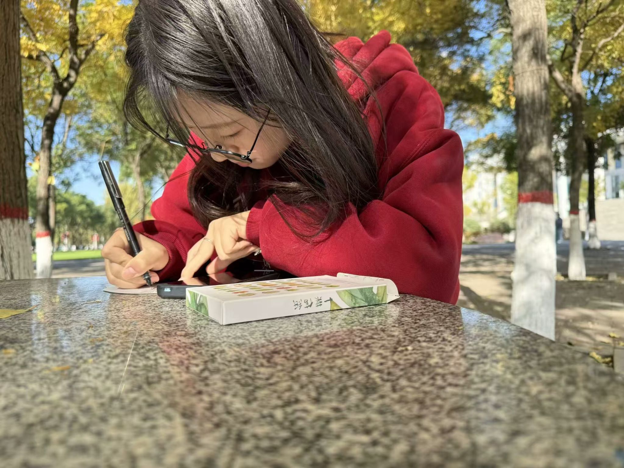 参观结束后,同学们齐聚毣谷完满报告厅,分享着自己的所见所感。李昊阳同学激动地提到:“艺术楼的那张照片,让我感受到了前所未有的宁静与舒适。晴朗的天空下,绿色的草地与整齐排列的树木相映成趣,红楼与黄叶交织出秋天的韵律。那一刻,我仿佛与美达成了某种默契,心灵得到了净化与升华。”