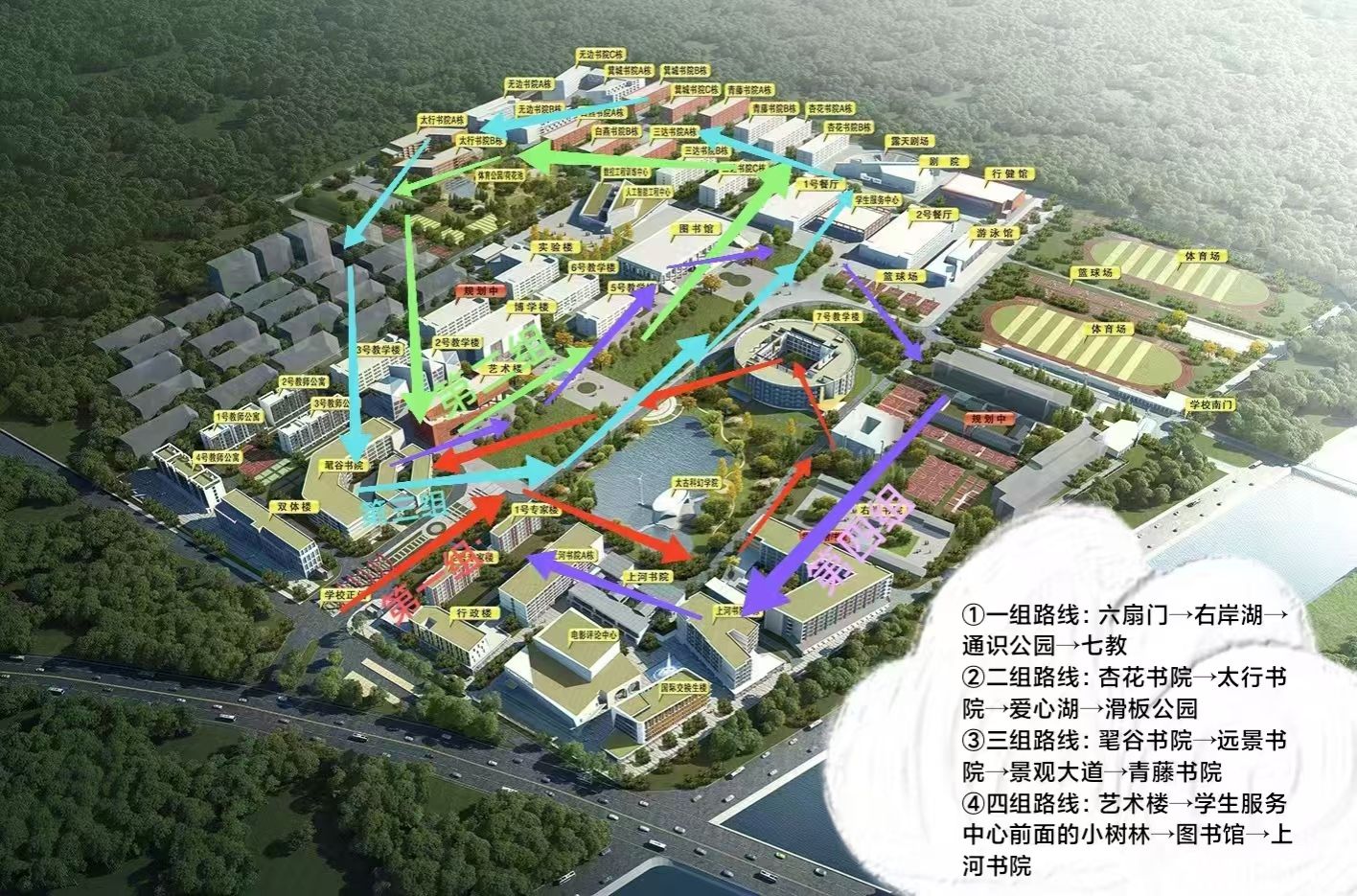 与此同时,第二、三、四组也在各组组长的带领下,分别穿梭于杏花书院、太行书院、爱心湖、滑板公园、毣谷书院、远景书院、景观大道、青藤书院、艺术楼等地。每一处景点都仿佛是一本打开的书籍,记录着校园的历史与变迁,也承载着美的韵味与情怀。