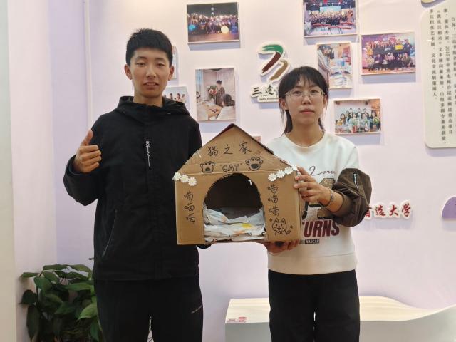 活动当天,阳光明媚,校园里洋溢着青春的气息。同学们一大早便聚集在指定的活动区域,开始了紧张而有序的准备工作。在制作流浪动物小屋的环节中,同学们齐心协力充分发挥创意,利用废旧纸箱、木板等材料,搭建起一个个温馨而实用的小屋。同学们用心搭建的每一个小窝,都像是为流浪动物精心准备的避风港。这不仅是一场动手实践的盛宴,更是一次心灵的洗礼,让保护动物的意识在同学们心中生根发芽,加深了同学们对环保理念的深刻理解。