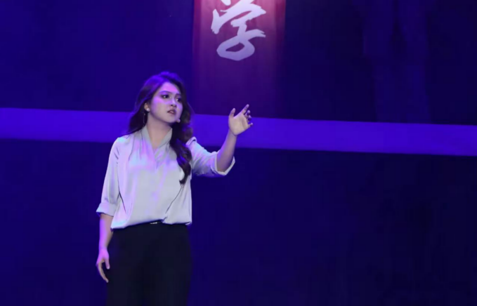 体态是舞台角色塑造中极为关键的一环,尤其在表现人物性格和社会角色时具有高度象征意义。在剧中,小雨母亲作为一名拥有一定权力地位的中年女性,体态呈现出极强的控制感和支配感。例如其唱歌时头部微抬,步伐坚定而利落,体现其强势的姿态;面对学生与下属,眼神居高临下,语气中常带有命令和斥责的口吻。