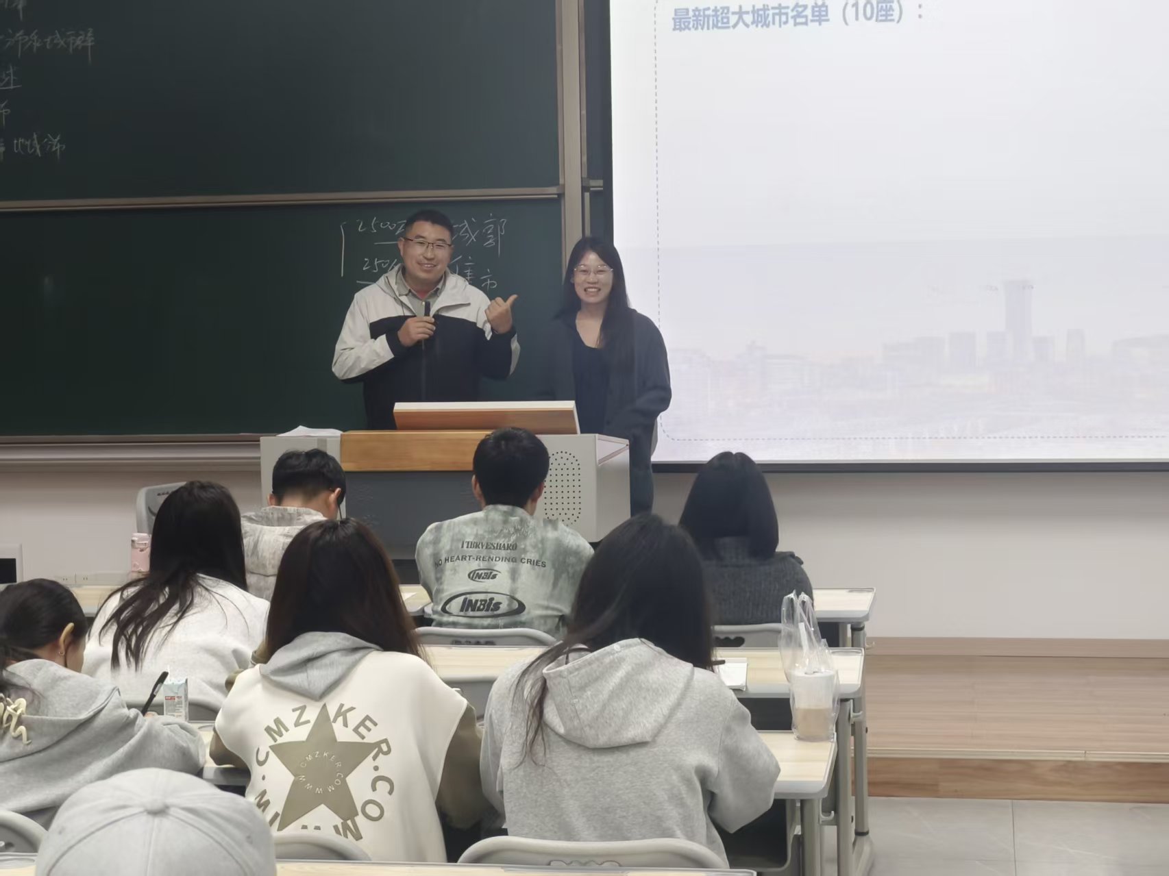 近日,在7教108教室,《中国近现代经济地理》课堂以“城市规模变化的经济逻辑与空间响应”为主题开展双师教学,主讲教师刘伟联合经济学教师宋露琴,从经济动力与地理形态双维度,解析城市规模扩张的内在机制与外在表现。