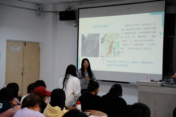 谈及环保与生活的平衡,课程打破“非黑即白”的认知误区。针对“垃圾分类麻烦”“禁放烟花少年味”等争议,宋露琴老师以垃圾分类为例,指出早期垃圾分类执行难,源于麻烦成本高于感知收益;如今积分换鸡蛋、可回收物变现等模式,正是用看得见的好处对冲操作的麻烦,让环保从义务变成划算的选择。 徐佳老师则结合《固体废物污染环境防治法》强调法律并不是“一刀切”的极端环保,而是通过设指导员教分类、定区域限放烟花等柔性规则,在生态保护与生活便利间找平衡——这不仅是环保的智慧,更是处事的逻辑:不强迫他人牺牲,不忽视集体利益,才能让选择被更多人接受。