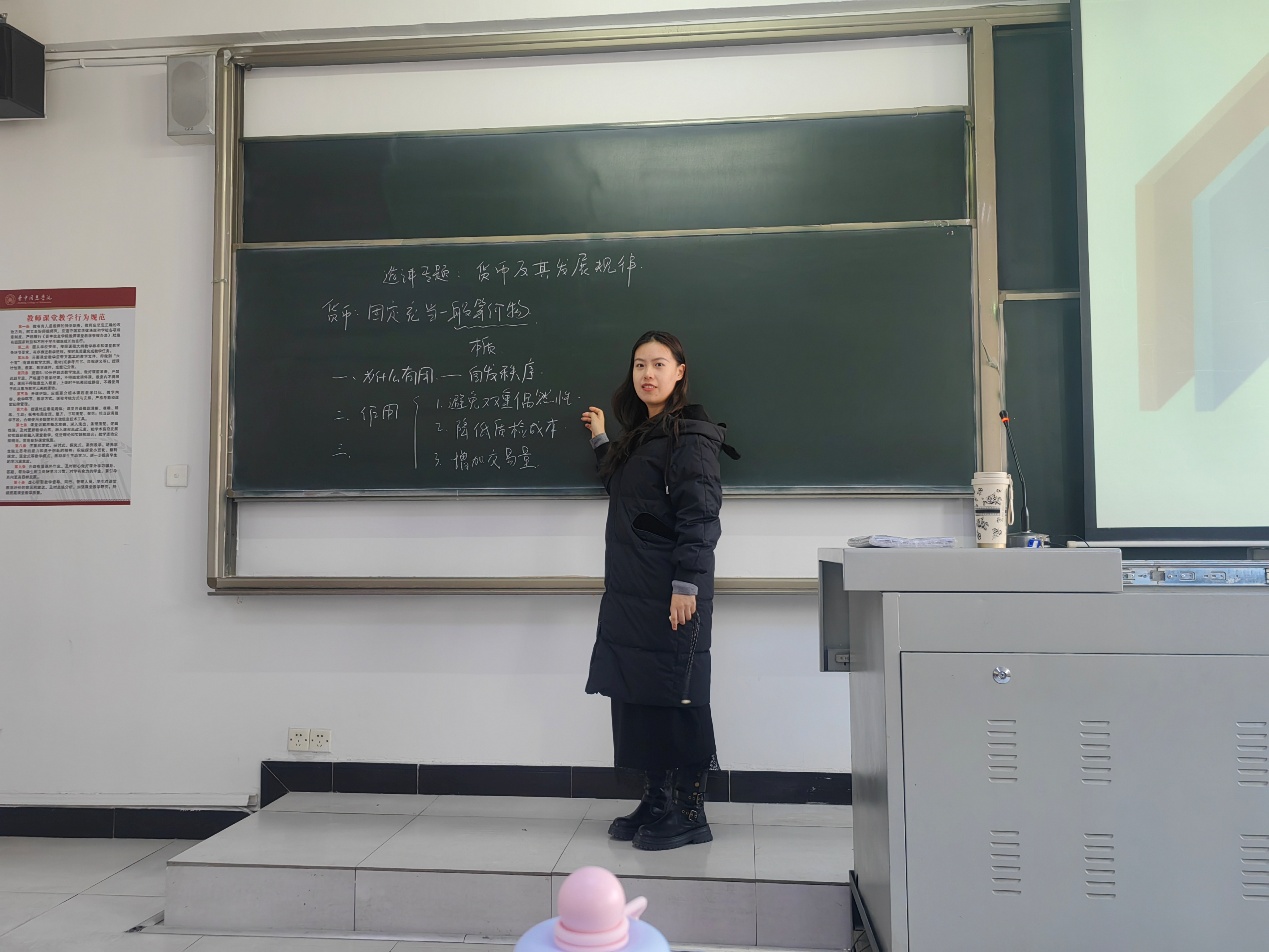 “作为文科生,这堂课让我彻底摆脱了‘经济=计算题’的偏见!当经济老师用马克思‘货币是商品交换的神秘面纱’开场时,我还在记笔记;但历史老师甩出‘母牛头盖骨货币’图片时,全班都炸了——原来货币从诞生起就带着文化基因!最妙的是‘0.5个汉五铢’的比喻:经济老师说‘就像你用半张百元钞买东西会被拒收’,瞬间让我理解了‘货币标准化’的重要性。现在复习《资本论》,看到‘一般等价物’四个字,眼前不再是黑体字,而是雅浦岛居民对着海底石头点头交易的画面。这大概就是‘活的知识’吧!”