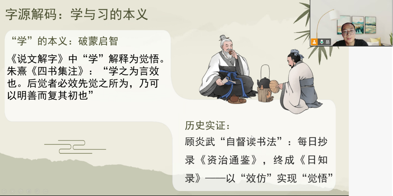 8月23日,《中国哲学智慧》课程组以线上会议形式开展了暑期试讲教研活动。本次试讲以《论语》中的学习观为核心,就课程设计、案例选择及学生反馈等方面进行了深入探讨,旨在进一步优化教学流程、提升课堂实效。