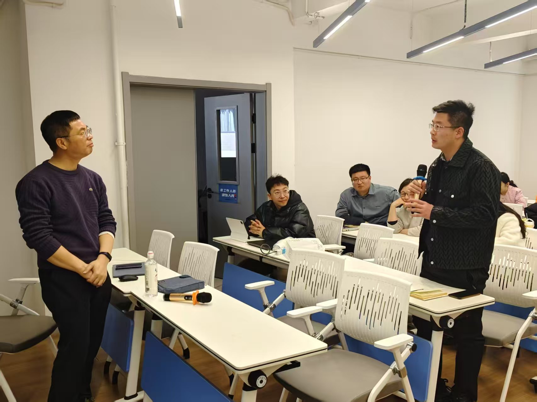 在活动末尾,教师们与赵教授积极互动。针对赵凯老师提出的人工智能通识课程考核方式的问题,赵教授分享经验,建议采用分组讨论、学生用AI制作博客和微视频、学生自定学习目标并互评等方式考核。赵云老师提出课程建设方面的疑问时,他鼓励学生创建课程智能体,用AI生成课程讨论博客,提升动手能力。赵振滔老师提出AI在美学类课程考核的应用问题时,赵教授提议避免单纯考核背景知识,可课堂随机抽取内容组织学生分组合作讲解。赵教授的一系列解答,鞭辟入里又极具实操性,不仅从理论层面剖析了AI与教育融合的方向,更在具体教学环节给出了详实且创新的建议。