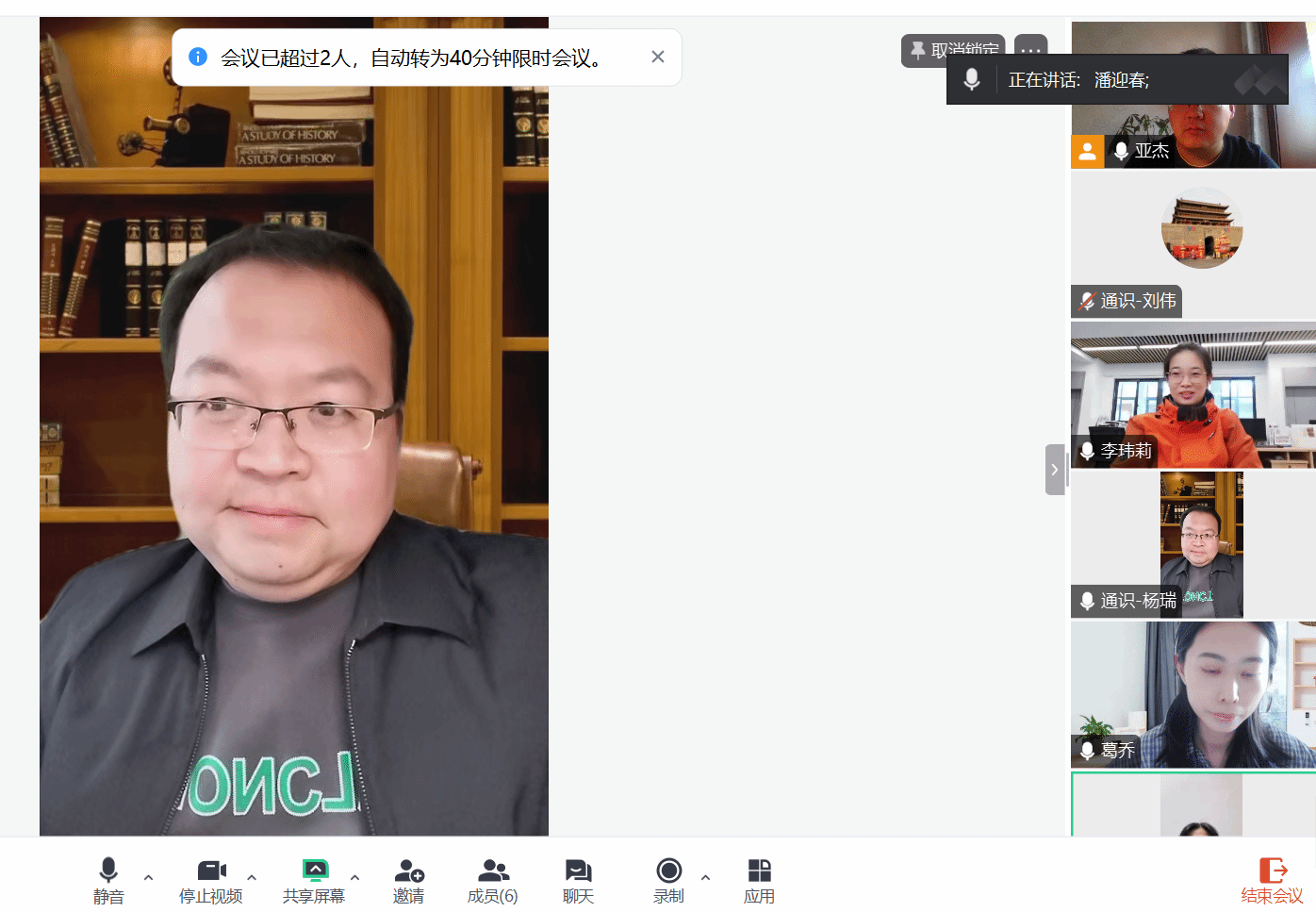 3月28日下午,集团青年教师成长导师潘迎春教授与通识教学部的张亚杰、刘伟、杨瑞以及远景学院的李玮莉、葛乔5位老师齐聚“云端”,共同探讨本学期教学规划,会议由张亚杰老师主持。