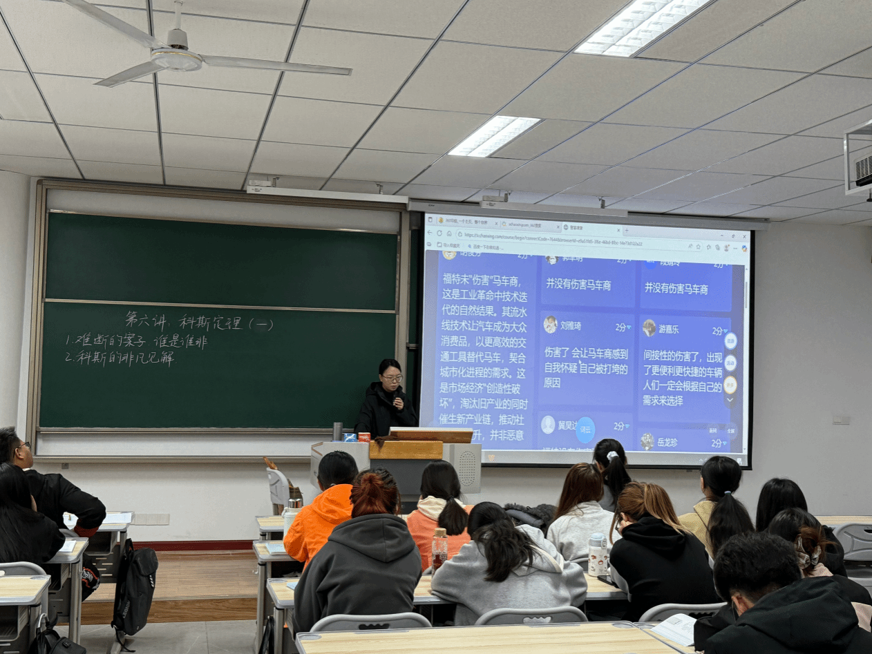 为优化课程建设,提升教学水平,促进教师间的经验交流与专业成长,生活中的经济学课程组全体教师走进杨晋丽老师的课堂,开展集体听课与教学研讨活动,本次活动以实战观摩为切入点,探索经济学课程教学的优化路径。