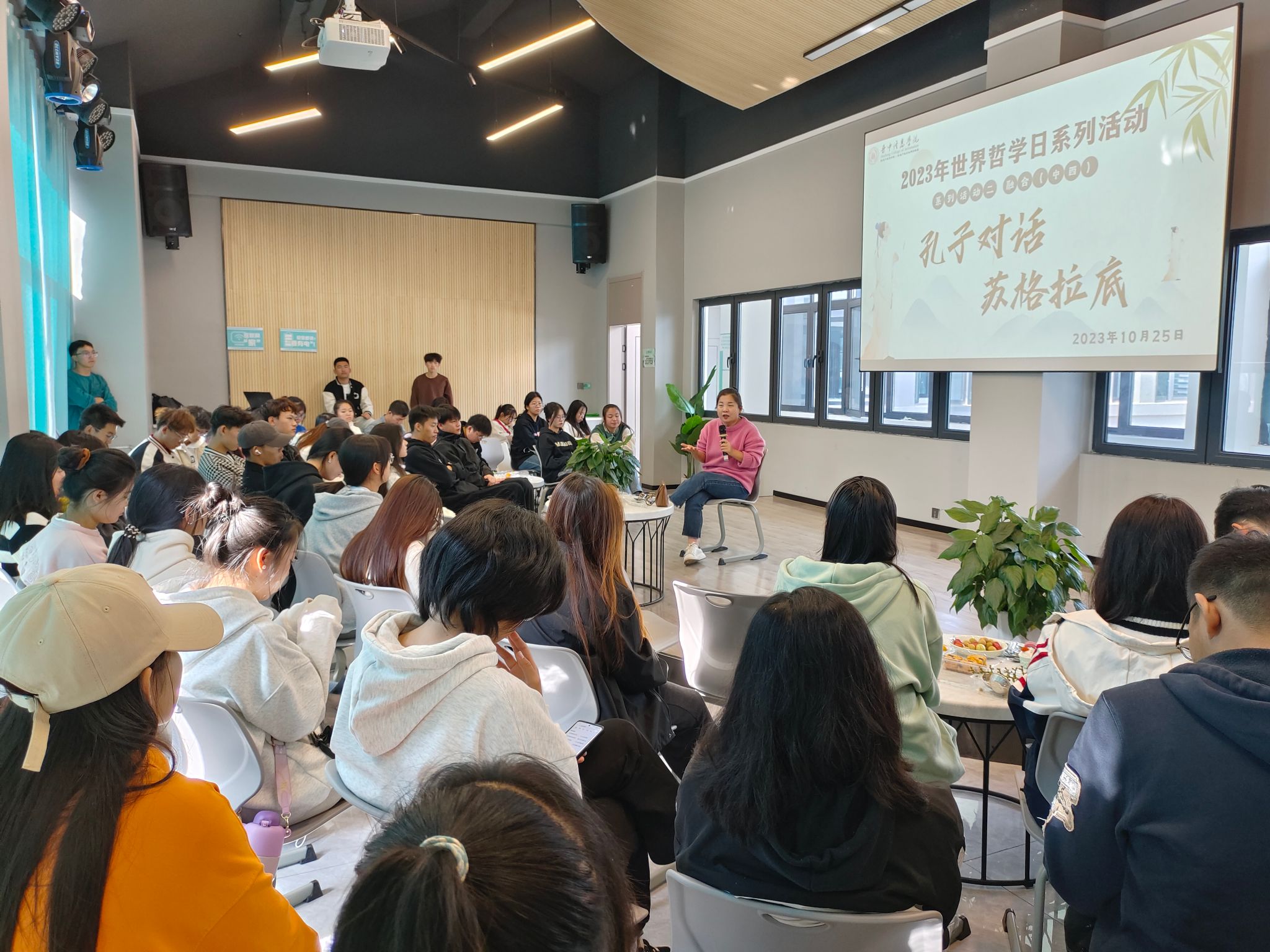 在10月25日的“融合(中西)·孔子对话苏格拉底”圆桌论坛活动中,张素英老师引领同学们深入解读《论语》与《理想国》两部经典著作,领略孔子和苏格拉底的哲学智慧。她引经据典,以生动的语言和形象的比喻让参会者们对孔子的儒家思想和苏格拉底的哲学理念有了更加直观的理解。