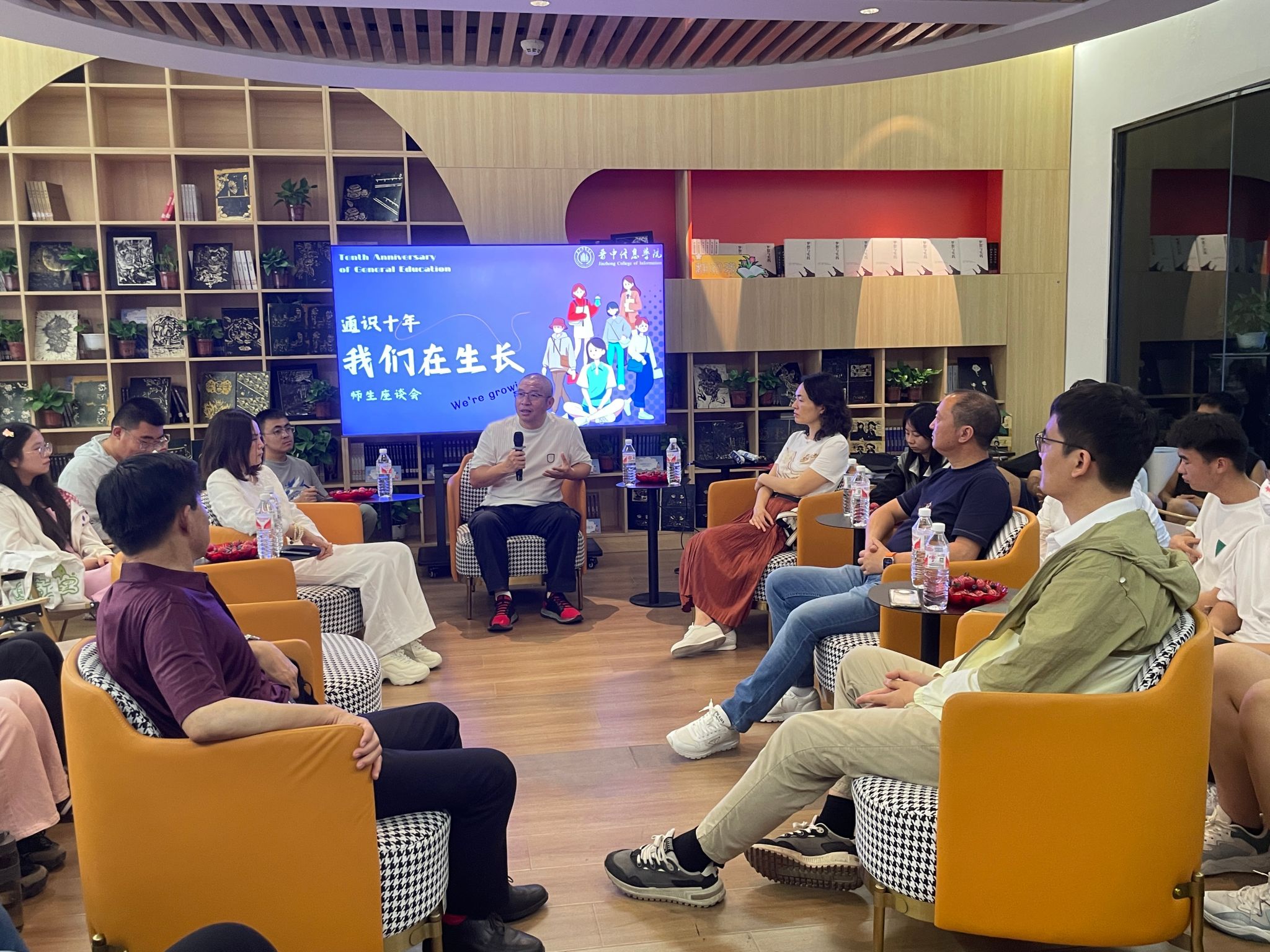 座谈会伊始,主持人赵云老师向参加本次座谈会的校友表示了热烈的欢迎,欢迎他们回家,并介绍了当下通识教育版块的构成以及在座的教师与在校生代表。之后,陈校长简要回溯了通识教育在我校的发展历程,从一个部门的先行先试,到多个部门一体多翼,协同联动,打造出独特的“同心圆”模式。从零到一,从一到多,十年风雨通识路,有艰辛、有挣扎;更有喜悦和欣慰:那就是看到不同学科专业背景的同学们在浸润了通识教育后获得了意想不到的成长。作为通识教育的“火炬手”,通识会一直引导学生解锁无限可能,收获彼此和而不同的人生精彩。
