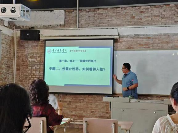 最后由赵凯、赵亚楠、姜甜甜、陈艺华、戴国庆5位新老师对新学期所授课程进行教学展示。赵凯老师负责讲授《信息技术与社会》,赵亚楠老师负责讲授《中国哲学智慧》,姜甜甜老师负责讲授《幸福课:积极心态的力量》,陈艺华老师负责讲授《文化生活与器物》、戴国庆老师负责讲授《城市与文化遗产》。