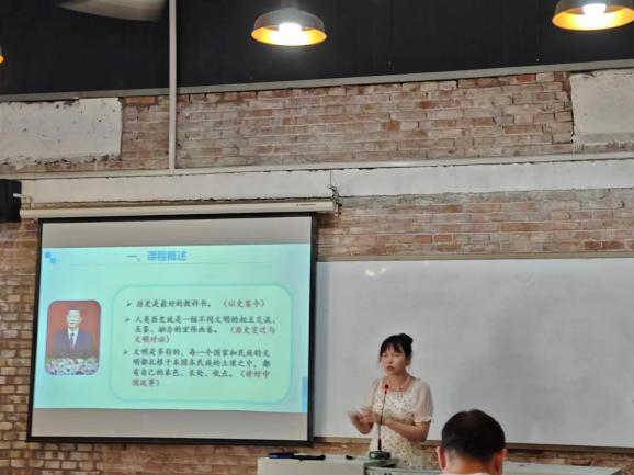 在随后的教学展示环节中,刘伟、李珂两位课程负责人分别对课程组在暑期根据集团要求所做的工作进行了汇报。刘伟老师介绍了《中国近现代经济地理》的课程建设、教学目标、教学设计、课程规划等内容,课程设计过程中,紧紧围绕山西,使学生对成长的家乡有全面的认识,培养学生的家国情怀。李珂老师对《世界文明的历程》进行说课介绍,修改后的课程涵盖的内容更为丰富,以不同地区的文明演变及其形态与文明之间的交流碰撞为两条主线,涉及政治、经济、思想文化的变迁,课程目标方面则是古今结合,通过古代分析当今社会现象。