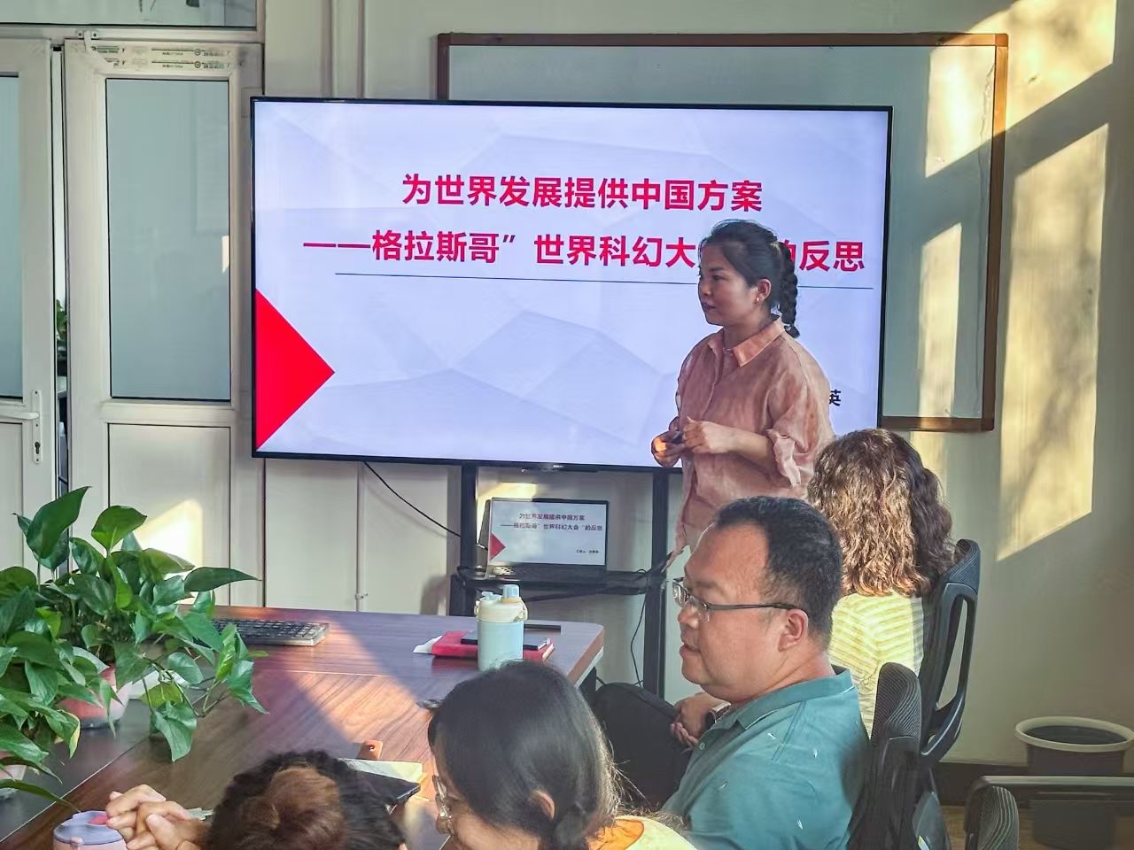 张素英老师于8月6日——8月15日赴英国格拉斯哥参加了第81届世界科幻大会。 她结合科幻大会的参会感想与英国游学的经历以“从科幻大会到中英文化”为题进行了分享。她提到,格拉斯哥科幻大会更像是一个大型的科幻主题派对,充满自由和活力,与成都科幻大会的官方性质形成鲜明对比。接着张素英将话题引向了“中英文化的区别”。 她表示在讲解“中国哲学智慧”课程时,会提到“中国方案对于解决世界问题的重要性”,但这句话落实到具体层面却较为困难。她结合自己在英国的见闻,从价值传播思考中英文化的区别,用合作共赢的中国方案共同应对全球性挑战。