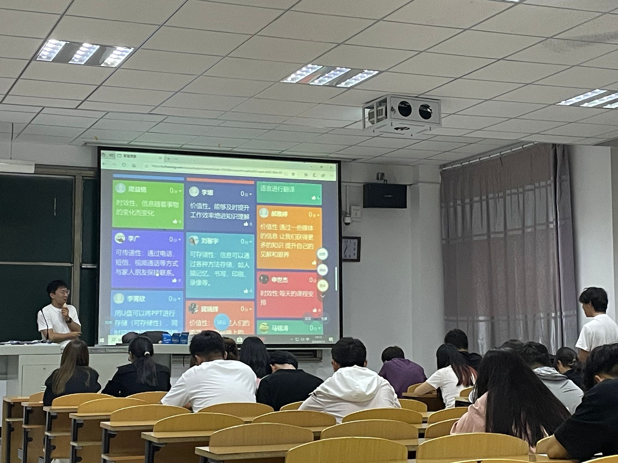 在任晋茹老师的课上,首先抛出来一个疑问:“同学们知道什么是中国‘新四大发明’吗?”不少同学都能轻易地答出:共享单车、网络购物、移动支付和高铁动车。其实以前的我们是完全不敢想象有一天可以不带现金出门,有一天可以足不出户线上下单买东西……这是技术带来的改变,我们每一个人都是其中重要的参与者。其次,老师让同学们从技术的视角出发思考未来的社会会有什么新变化,同时邀请6位同学上台写下自己的想法。大家的答案各有特色,有的说可以移民到其他星球、有的说会飞的汽车、有的说时空穿越……总之充满了“科幻色彩”,但是未来的某一天或许会成为现实,就像今天的中国“新四大发明”一样。随后任老师详细讲解了VR技术支撑下的拥有虚拟环境、虚拟身份、虚拟享受的元宇宙、让人类能够实现永生的全脑仿真技术以及贯穿教育、医疗、家庭的玻璃技术等。最后任老师以狄更斯的名言“这是最好的时代,这是最坏的时代”来总结,在信息技术高速发展的今天,我们快乐并担忧着,但要始终相信技术永远不会取代有思想、有灵魂的人类。