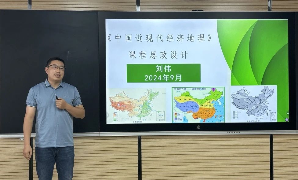 最后刘伟老师带来他的《近现代经济地理》课程思政设计。刘老师讲述道,这门课程的设计核心可以称之为“2W1H”,即为核心问题(what),目的(why),任务(how),教学目标由此层层递进,在知识点中找到思政点融入点,从而不着痕迹的深入人心。将思政点以“图、表、视、文”多媒介融入,利用“四堂融合”的思政模式,“传统+线上+翻转+第二课堂”,激发学生思考和兴趣。学生在此带领下,获奖无数。同时,课程老师不忘反思教学效果、学生兴趣和改变传统思政元素的思路。
