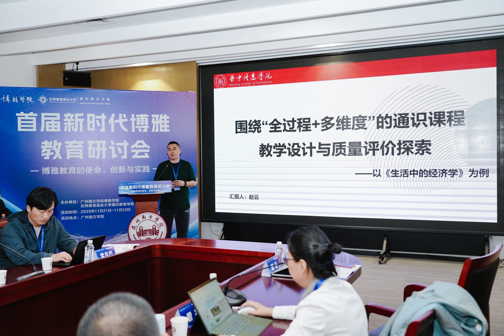 11月21日至23日,由广州南方学院博雅学院与北师香港浸会大学通识教育学院联合主办的“首届新时代博雅教育研讨会”在广州南方学院举行。本次研讨会以“博雅教育的使命、创新与实践”为主题,聚焦新时代背景下博雅教育的理念更新、路径探索与实践创新,吸引了来自北京师范大学、北师香港浸会大学、中山大学、重庆移通学院、珠海科技学院等全国多所高校的专家学者、青年教师及研究生代表齐聚从化,多所院校组团参加,共同探讨博雅教育的未来发展。我校通识教育学院教师代表赵云老师受邀在分论坛做报告分享我校通识教育在应对AI挑战的经验。
