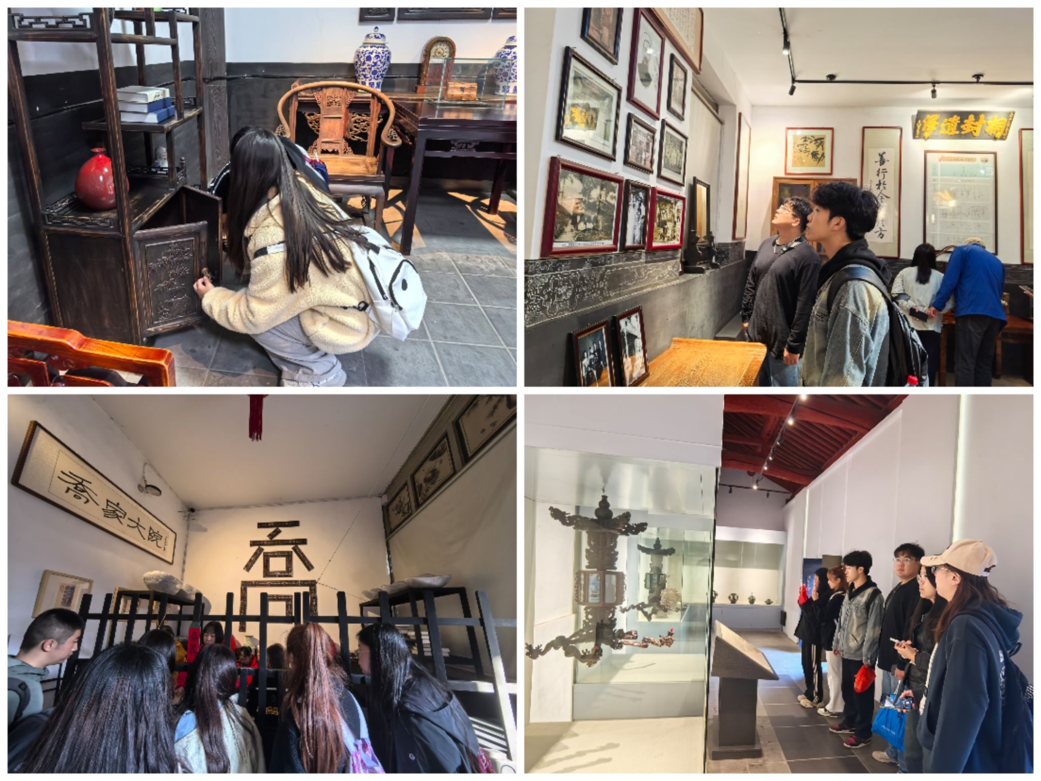 整个大院变成了移动课堂。同学们三五一队:有的举着手机边拍边录,生怕错过任何一个细节;有的展柜前细细品读文物故事;更有“学霸小队”围着老师连环发问:“乔家衰败是不是因为固守传统,错过了金融变革?”“他们的股份制和现在的股权激励好像啊!”甚至有几个同学自发组成了“vlog小分队”,边游览边录制现场解说,直言要做出“晋商主题爆款视频”。