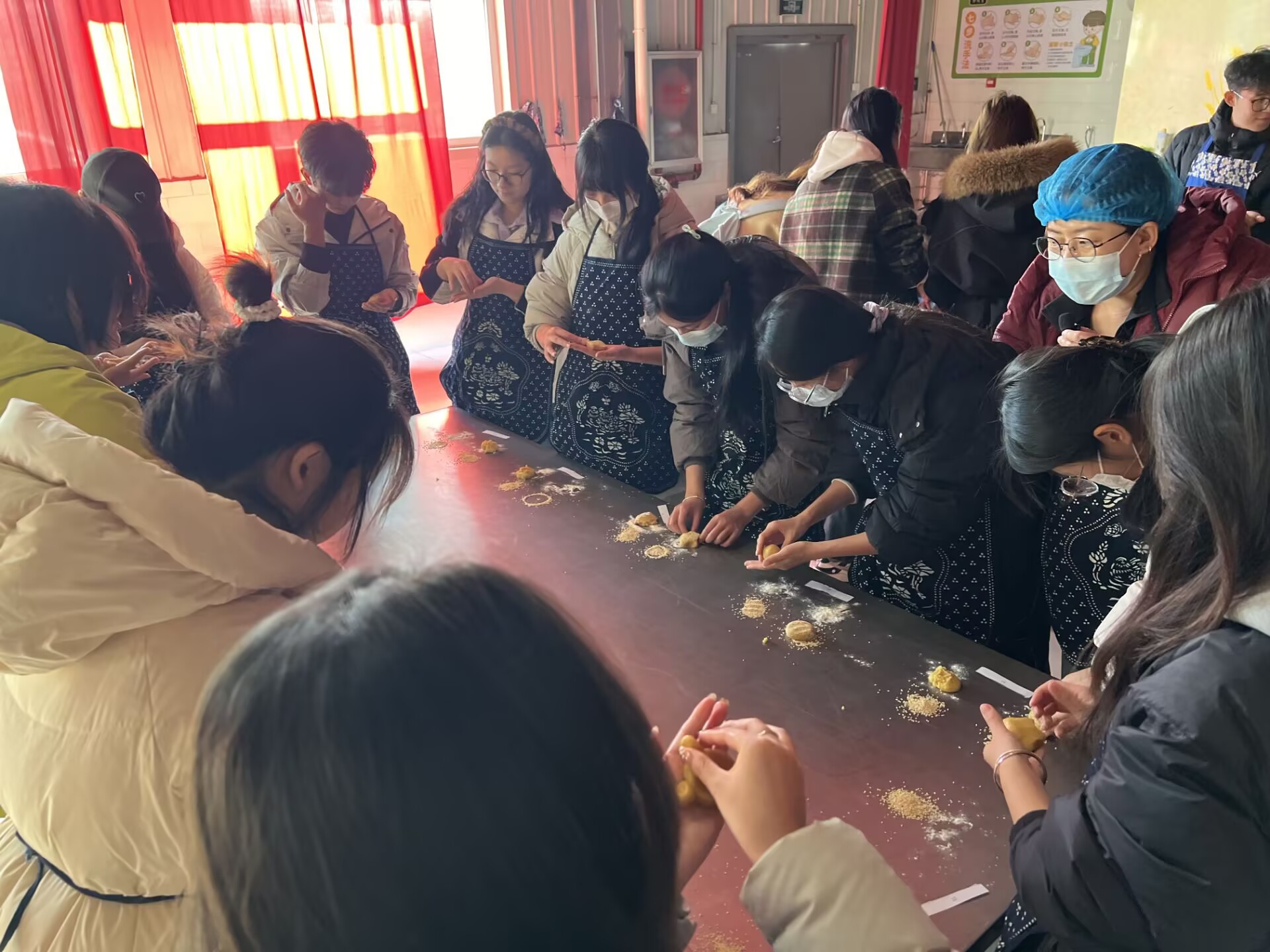 活动的重头戏,是太谷饼DIY作坊。同学们换上围裙,在作坊老师傅的指导下,亲手揉面、塑形、烘烤。当金黄的太谷饼从烤箱中出炉时,香气四溢,同学们欢呼雀跃。一位同学兴奋地说:“原来一块小小的太谷饼,要经过这么多道工序,每一口都饱含着匠人的心血!”
