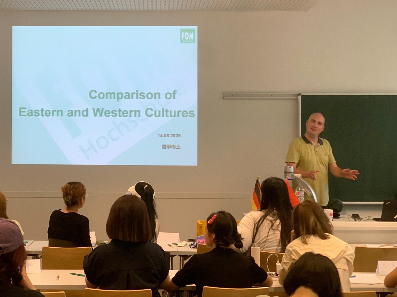 上午的时光属于思想的碰撞与理解。游学团师生们深入参与了以“中德文化差异”为主题的交流学习活动。告别理论的单向灌输,活动聚焦于真实的互动与共鸣。通过生动的案例分析、情境模拟和开放讨论,师生们共同探讨了中德双方在价值观念、社会习俗、教育体系等方面的异同,并深入挖掘其背后的文化根源。每一次坦诚的分享,每一个好奇的提问,都是在用心搭建跨越文化鸿沟的桥梁。这不仅是一次知识的拓展,更是一次文化敏感度与包容性的浸润式培养。师生们深刻体会到,理解差异是消除隔阂的起点,也是在多元世界中自信展现中国青年风采、促进文明互学互鉴的坚实基础。