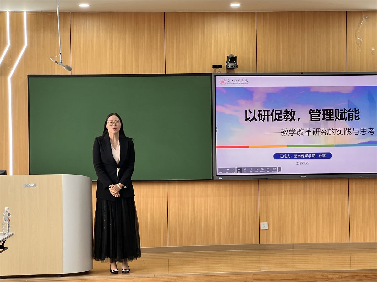艺术传媒学院教学副院长孙琪以“以研促教,管理赋能”为主题,围绕“萌芽”培育、“成长”推进到“结果”转化的全周期,系统剖析了教学改革研究项目培育框架,针对项目申报、过程推进、成果转化三大环节的常见问题与应对策略进行深入解读,并结合自身实践案例分享宝贵经验,为参会人员带来深刻启发。