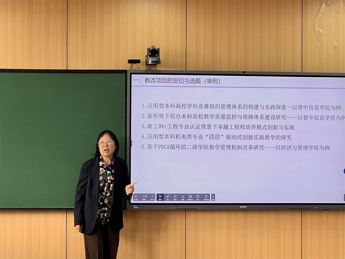 在专家指导环节,三位专家结合具体项目实例,针对前期审阅教学管理人员在研项目和教改论文等材料梳理的问题逐一开展精准反馈。张淑娟教授聚焦教学改革研究项目重点,从项目定位选题、申报书撰写、核心竞争力提升三个维度进行细致分享;苗迎春教授围绕申报书中选题背景、选题意义、研究现状、研究内容、研究方法、研究思路等各维度明确填写要点;陈立潮教授从教学管理人员的职责、任务、能力出发,界定可研究的范围与主题,并就团队建设、项目打造、成果转化等方面分享构建路径。专家们的指导兼具理论高度与实践深度,为参会人员提供了清晰指引。
