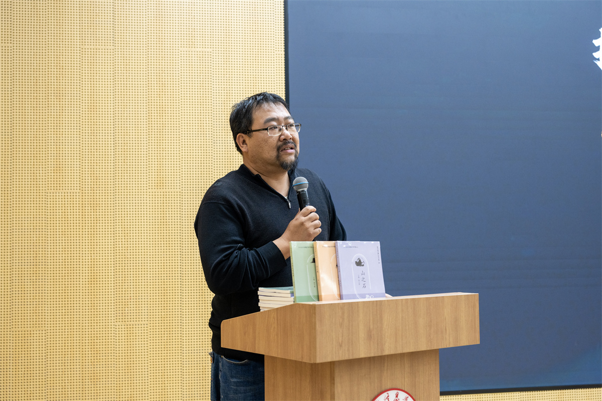 学校创意写作学院教师代表钟小骏在发言中回顾了指导学生创作的历程。他提到,从选题采风到反复修改,每一部作品都凝聚了师生共同的心血。他表示:“如果将《乌马河文丛》比作是一条文学长河,每一位作者都是长河中美丽的浪花。文学创作是艰苦而美好的事业,同学们在挖掘山西文化的同时,也完成了一次次自我的成长与蜕变。”