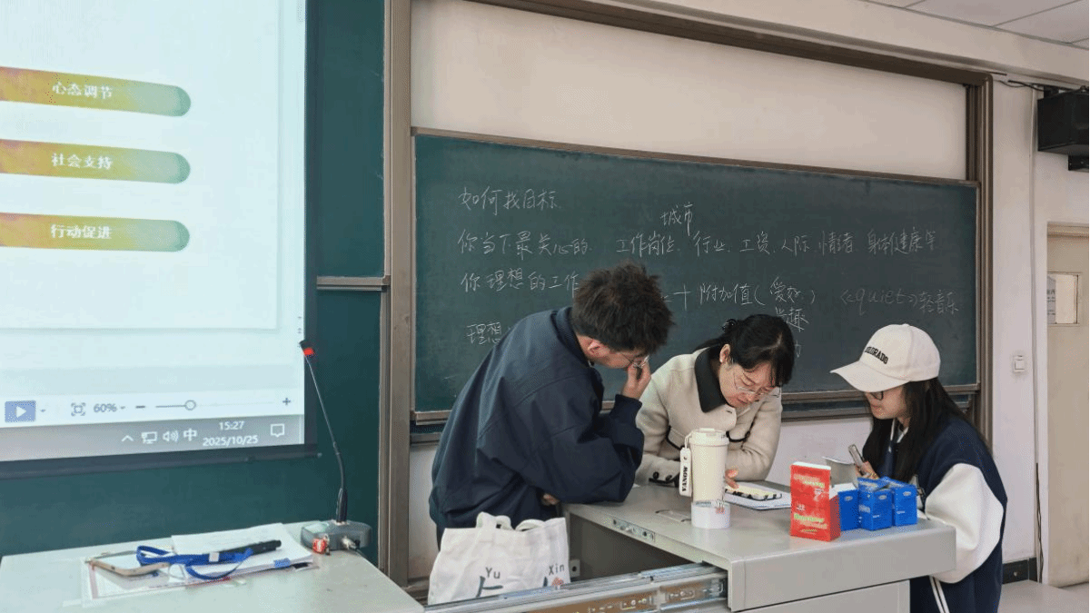 10月25日上午,张瑞颖老师的《心态调节与行动促进》课程,针对毕业生求职中的焦虑、自我怀疑等负面情绪,通过“压力疏导训练”“小目标拆解法”等内容,引导学生建立“理性复盘、正向激励”的求职心态,同时将“焦虑情绪”转化为“分阶段行动清单”,实现“心态与行动双向促进”,为求职过程注入积极动力。