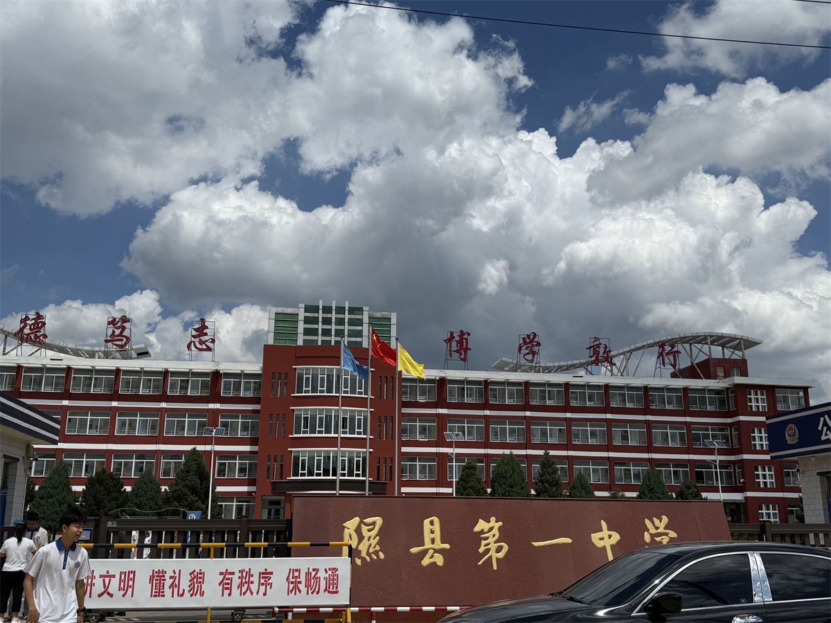 隰县一中教学楼前,一声温暖问候、一张珍贵合影,为此次回访之旅拉开序幕。傅永林副校长与该校领导、学校西部计划志愿者王征宇并肩伫立,身后教学楼玻璃幕墙上“立德树人、全面发展、五育共举”的醒目大字,与电子屏上“谱写教育强国建设华章”的鲜明标语,共同为这温情一刻写下了最好的注脚。