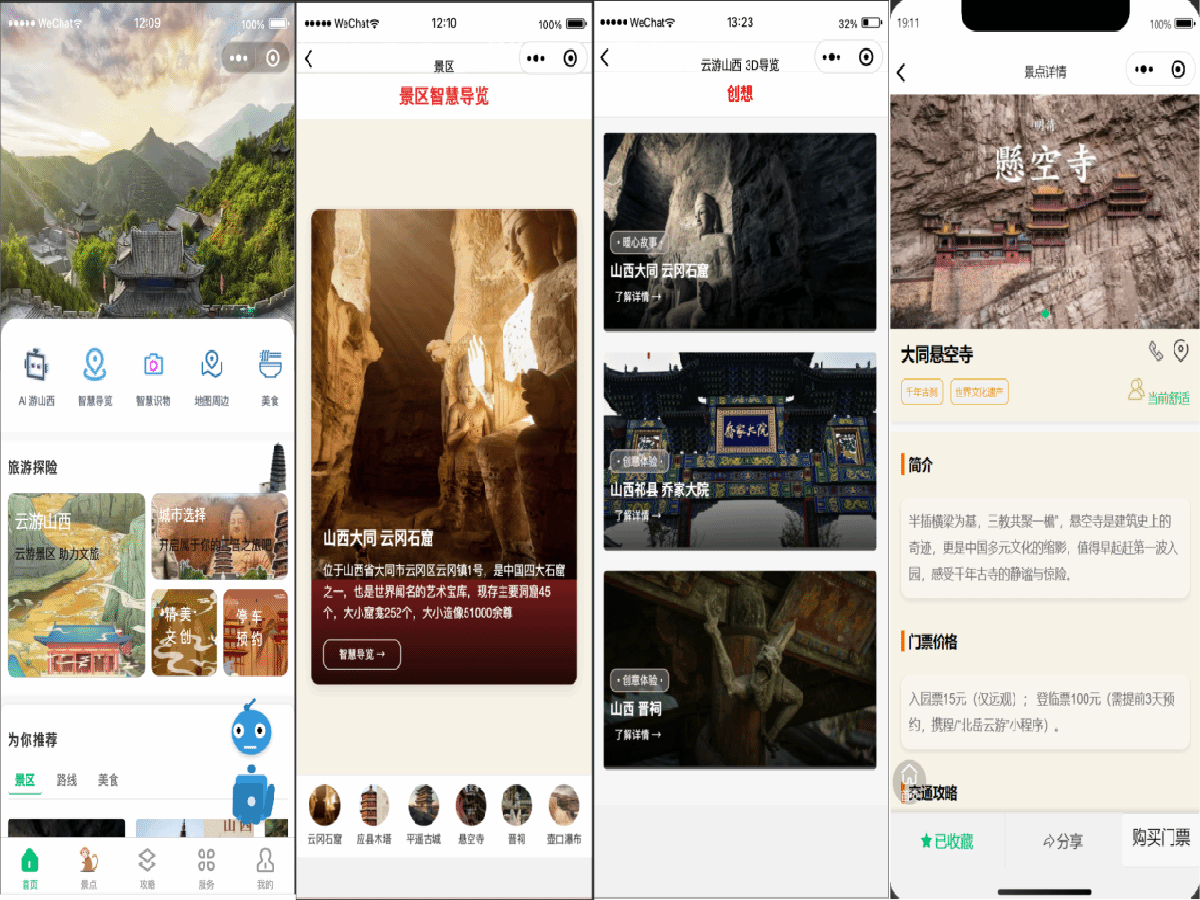 项目介绍:数维游晋以“科技赋能文化体验”为核心,聚焦山西文旅资源信息割裂与游客沉浸式体验的双重需求,打造集内容推荐、数据分析与场景导览于一体的智慧文旅小程序平台。系统集成AI智能问答助手、VR全景导览模块、GIS精准定位与ECharts图形可视化功能,能够为游客提供动态个性化推荐、智能路线规划及交互式景点导览服务。平台适用于景区游客服务、旅游管理平台接入等场景,助力景区优化资源配置,实现智慧文旅服务的提质升级。
