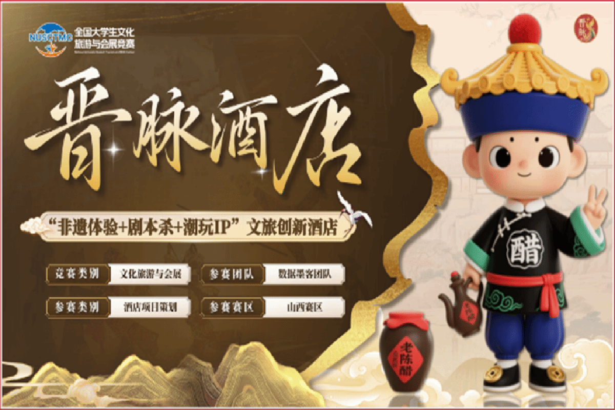 值得一提的是“晋脉・非遗剧本杀IP共生型文旅创新酒店”项目,从全国千余件优秀作品中脱颖而出,入围全国精英赛。项目以山西丰富的非遗资源为核心,依托学校对非遗文化的传承与剧本杀特色资源平台,创新性提出“非遗+剧本杀+潮玩IP”三位一体的运营模式,精准破解非遗传播形式传统、年轻群体触达难的行业痛点。团队深度挖掘山西182项国家级非遗、1173项省级非遗的文化内涵,精选晋剧、平遥推光漆髹饰技艺、平定砂器制作技艺等核心非遗主题,联合山西省晋剧研究院、平遥推光漆协会等15家本土非遗机构,打造了《漆盒秘函》《砂器密码》等沉浸式剧本杀作品,将非遗技艺转化为剧情通关必要条件,让游客在解谜过程中深度体验传统文化魅力,为特色酒店的发展提供方案。