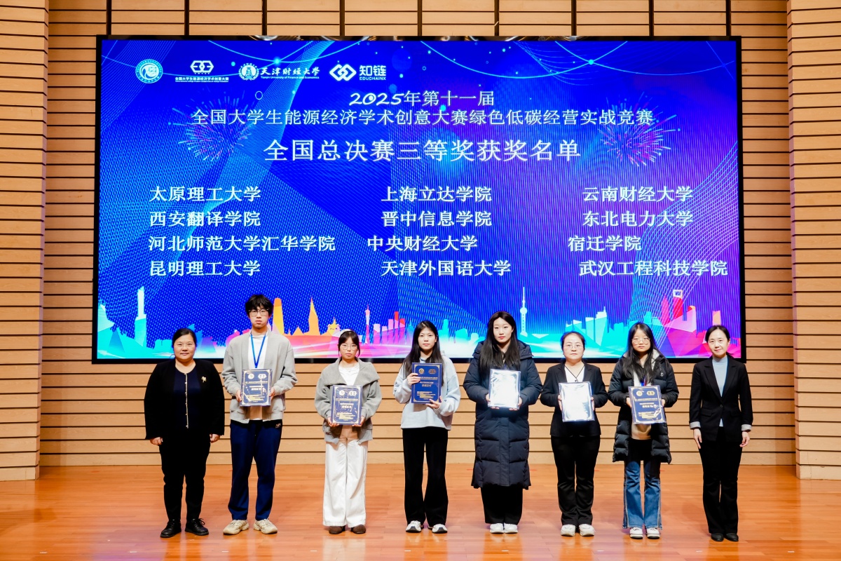 12月6日,第十一届全国大学生能源经济学术创意大赛绿色低碳经营实战竞赛全国总决赛在天津财经大学落下帷幕。学校由王怡、李维佳两位老师指导,裴静瑶、张梦、王依婷三名同学组成的参赛团队,凭借扎实的专业功底和出色的实战决策能力,在全国78支本科组参赛队伍中脱颖而出,最终斩获全国三等奖,为学校赢得荣誉。
