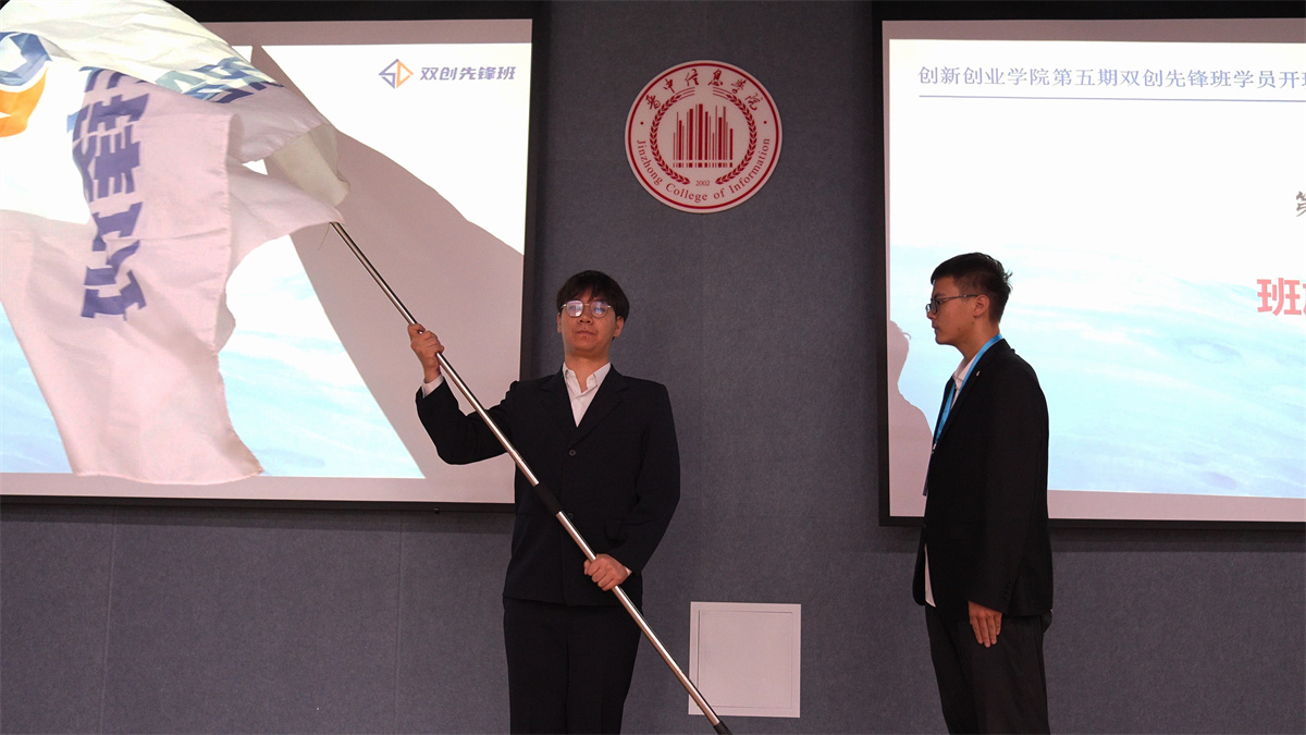 全场瞩目的班旗交接仪式将气氛推向高潮。老学员代表孙泽双手托举“双创先锋旗”,当她郑重交予新学员代表贾幸辑时,场下爆发出雷鸣掌声——这不仅是班旗的传递,更是让“传承”二字在班旗褶皱里生了根。