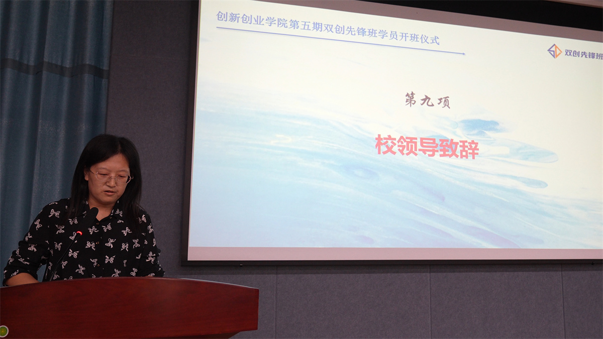 最后,校长助理杨碧霞发表重要讲话,她对新学员提出四点希望。一是希望学员们发现自我、主动探索,书本里没有现成的答案,需要我们自己去向实践寻找真知;二是希望学员们勤学善思、砥砺奋进,在双创班的学习期间,可以充分利用现有资源,实现知识、技能、理论的融合提升;三是希望学员们勇于实践、敢为人先,要学会先起飞再调整姿态,努力通过实践将自己的创意变为现实;四是希望学员们团结协作、融合发展,团队成员要学会相互协作,做到心往一处想劲往一处使,达到团队1+1>2的聚合效力。