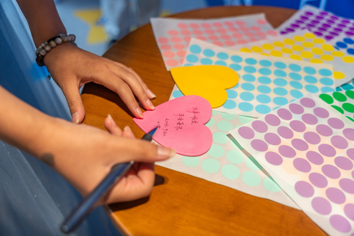 将青春折成一只纸船,可以放置幸福。精致的纸艺留言墙上,贴满了彩色便签:“想听校长聊童年的梦想”“期待找到志同道合的伙伴”“希望有人为我填空幸福”……这些未说出口的心声,早已被温柔地接住。