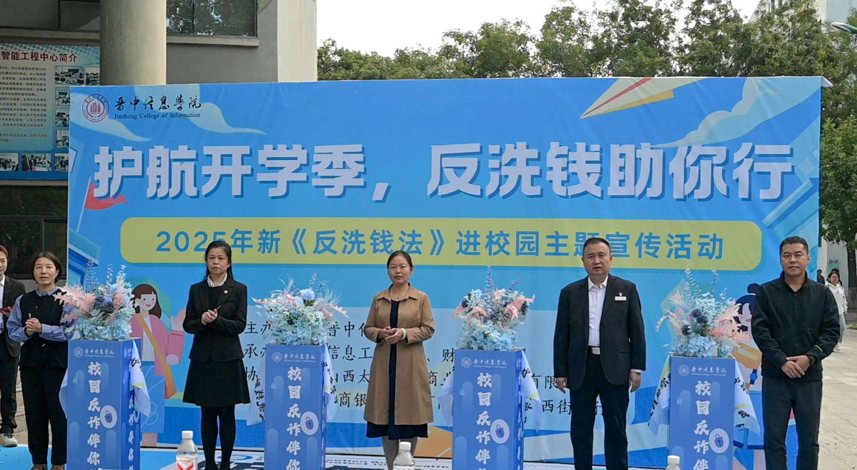 为深入贯彻金融安全教育要求,提升高校师生风险防范意识,9月22日上午,由晋中信息学院信息工程学院与财务处联合主办的“护航开学季·反洗钱助你行”——反洗钱知识进高校活动启动仪式在校园内举行。晋中信息学院副校长常彦阁、太谷农村商业银行股份有限公司董事长石爱斌、招商银行股份有限公司太原府西支行行长宋帆及学校各部门相关师生代表共同参与,现场氛围热烈、秩序井然。