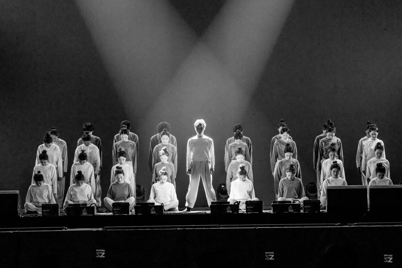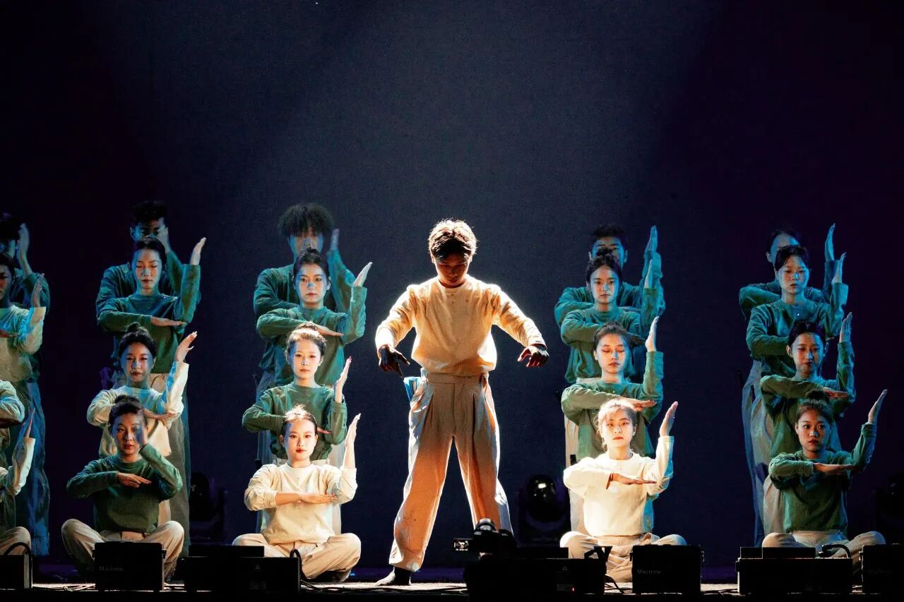 现代舞团带来的舞蹈《第五拍》巧妙将“击掌”意象融于扇声开合之间。舞者们用舒展而富有张力的肢体语言,演绎出新生打破隔阂、结识伙伴的生动过程。灯光随节奏明暗交替,让初遇时的共鸣感愈发真切。