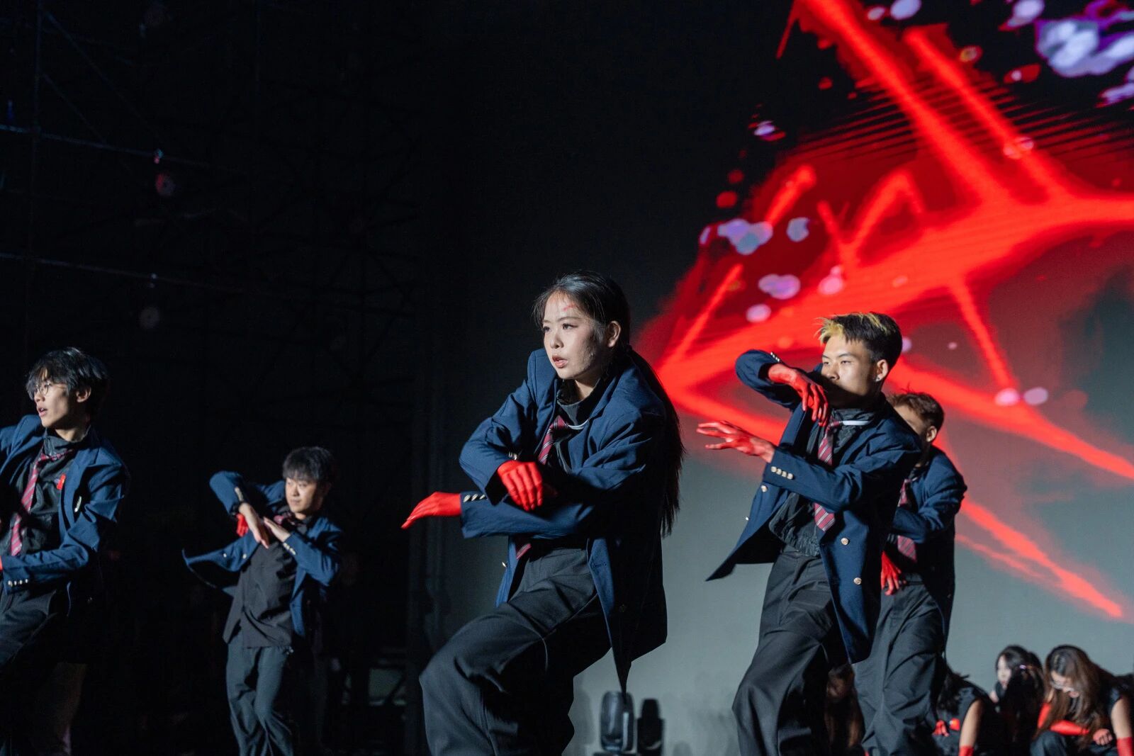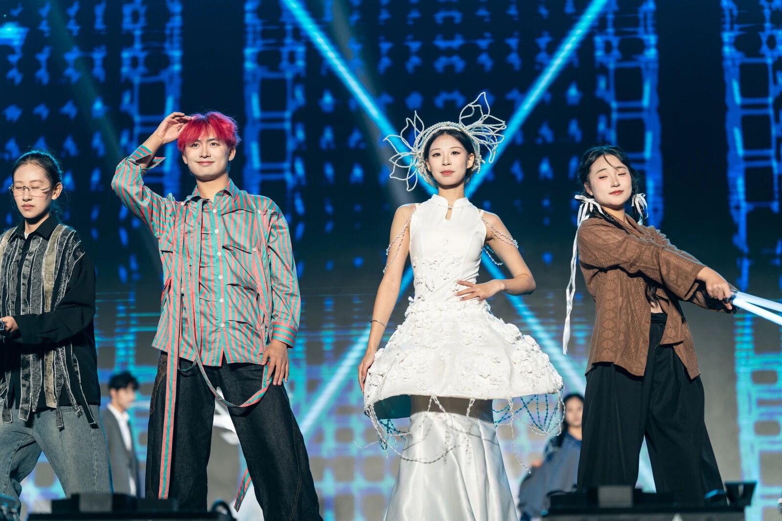舞剧团、服装创意工作室与美学设计工作室联合呈现的舞蹈服化秀《造梦人》,将创意穿在身上、舞在台上。演员们身着个性鲜明的服装,以自信的姿态展现青春最美的模样。校运动舞蹈队带来的齐舞《Passion all night》则将全场气氛推向高潮。整齐有力的动作、充满张力的编排,配合激昂的音乐与变幻的灯光,将信院学子蓬勃的朝气展现得淋漓尽致。