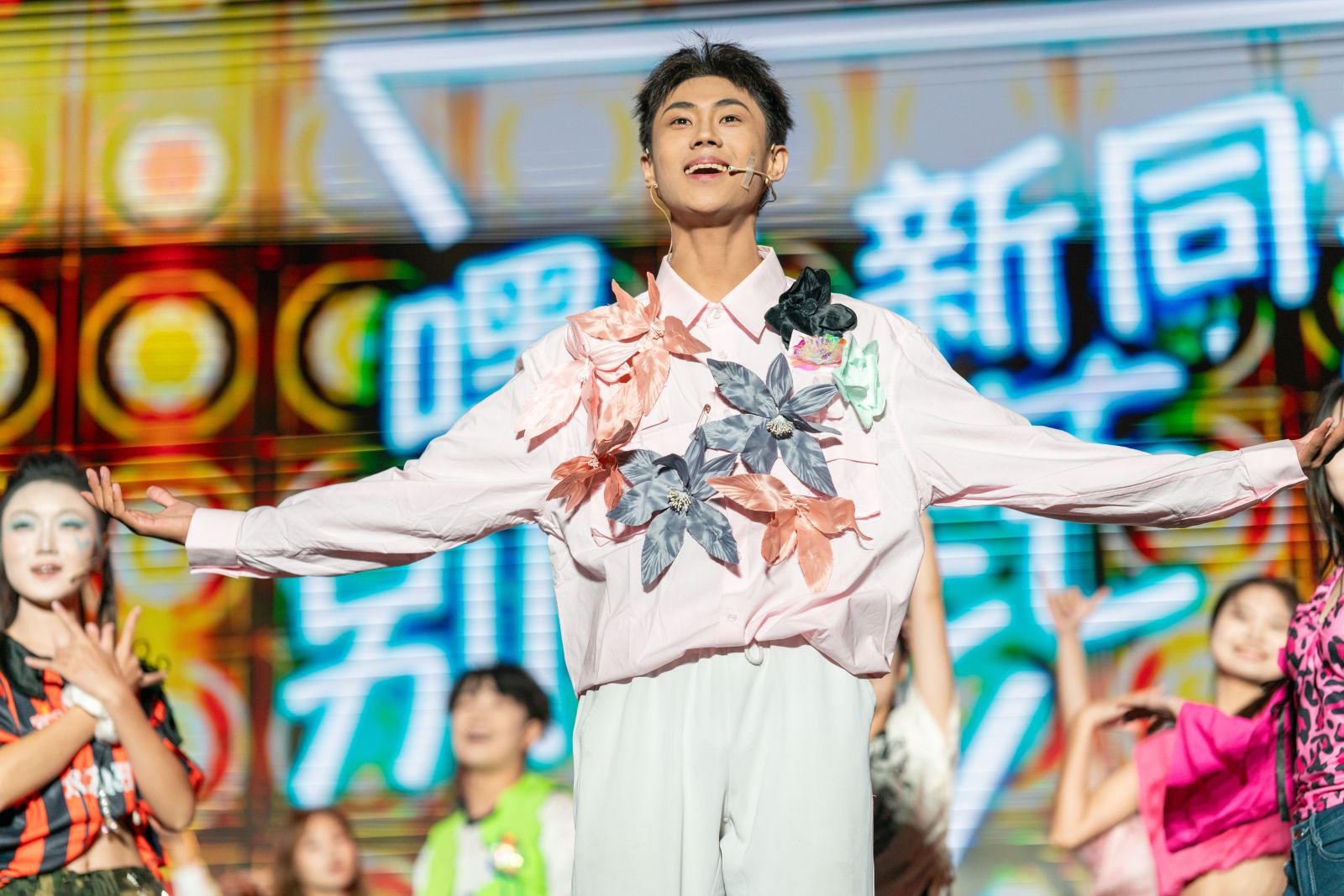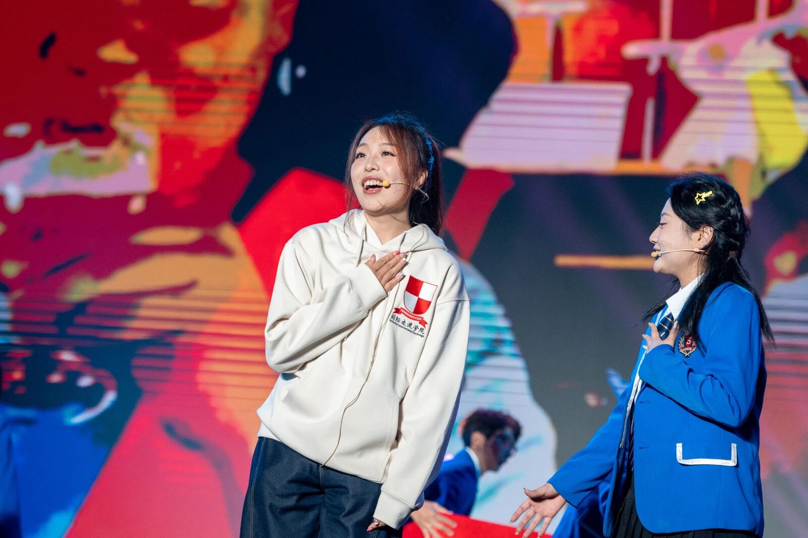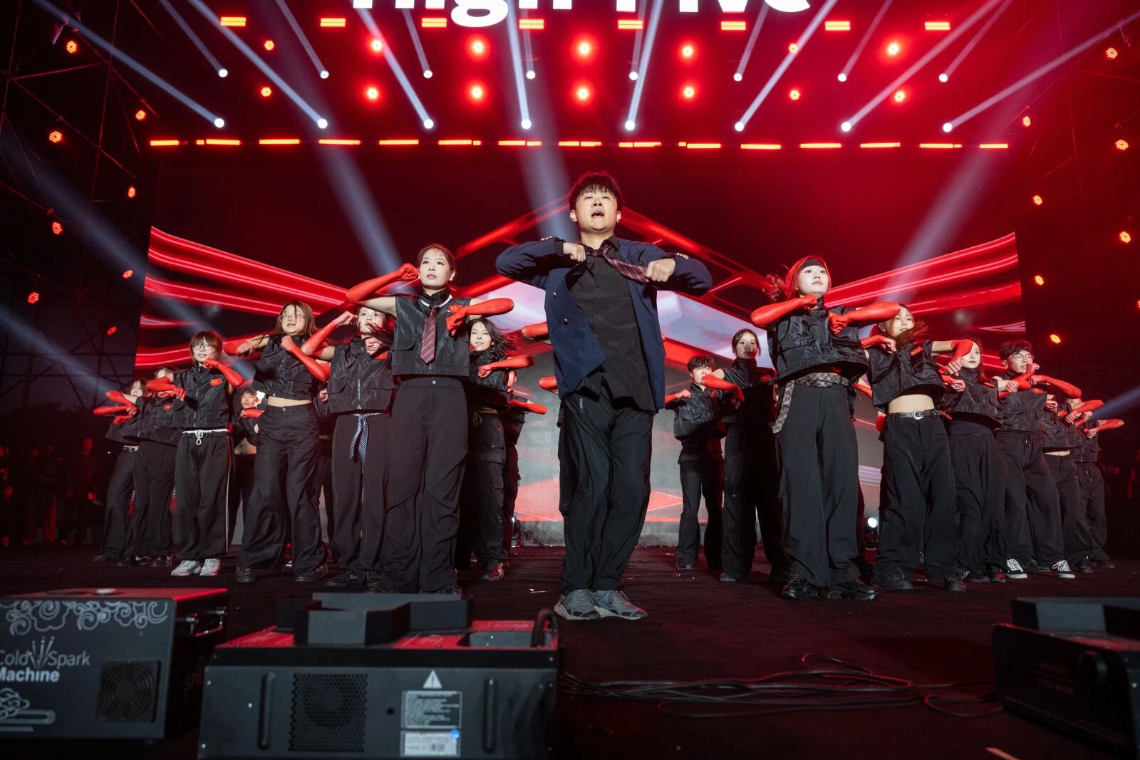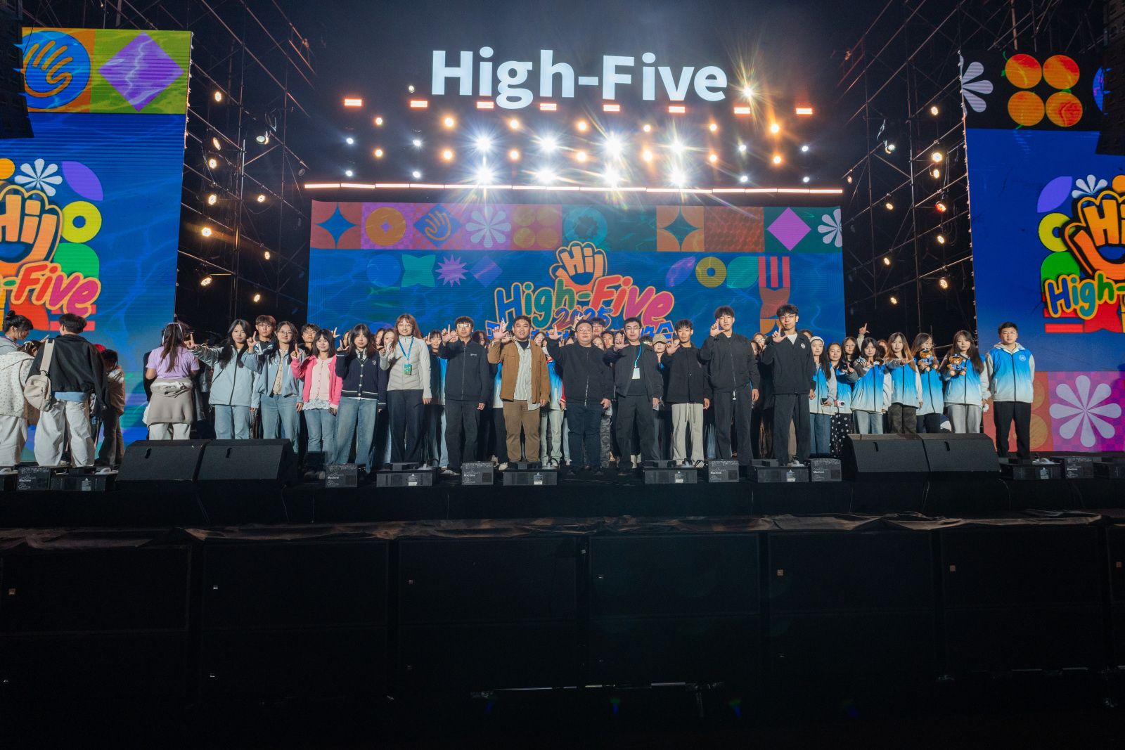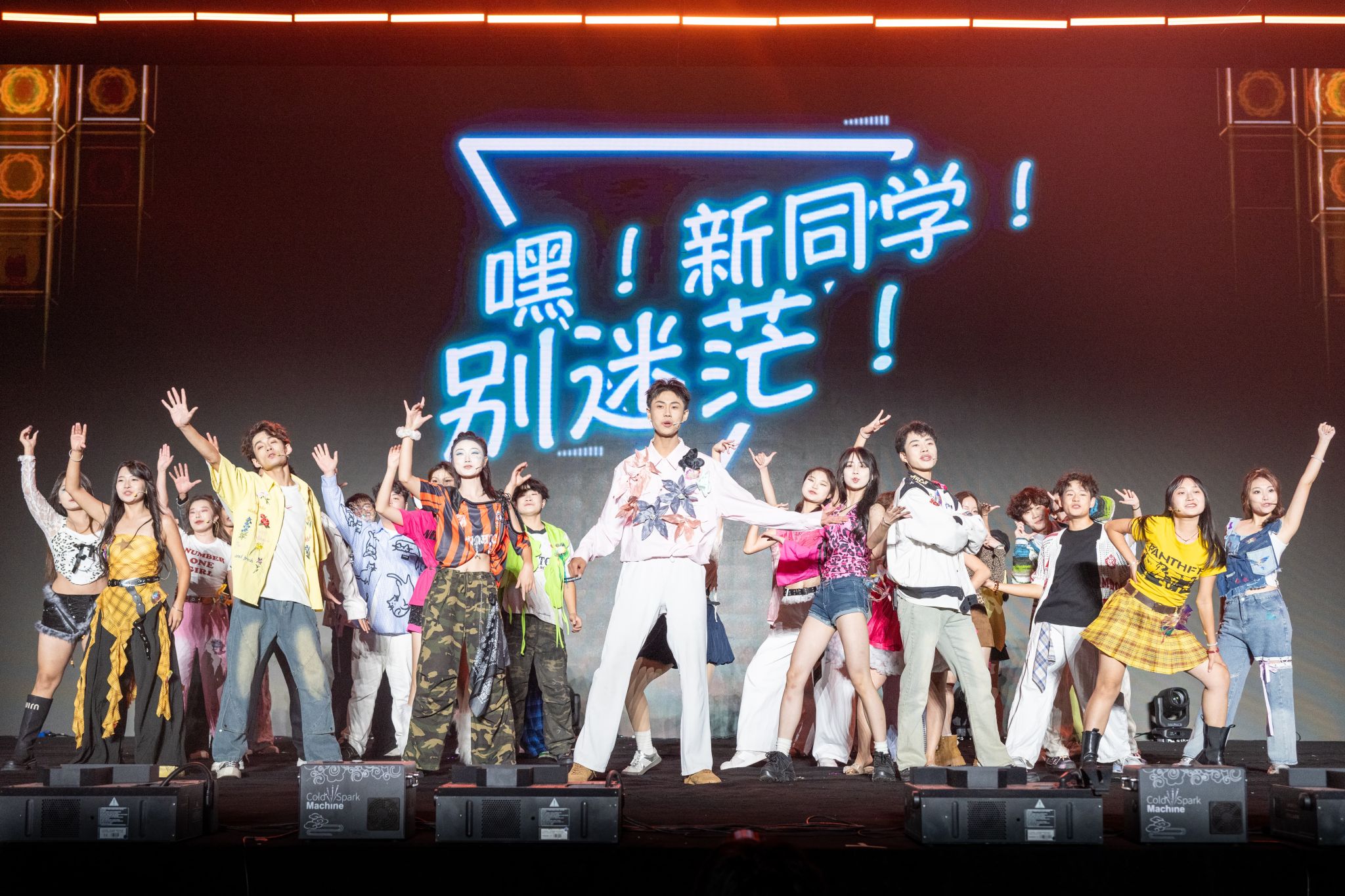 本届迎新晚会以“High-Five”为主题,以“击掌”为线索,串联起新生与校园之间的情感共鸣。整场晚会分为“Hey!新面孔!”“Wow!超有料!”“Up!青春力!”“Go!High-Five!”四个篇章,将节目创意、舞台效果与学校“四位一体双院制”育人理念巧妙融合。明快的色彩随击掌互动流转,绚丽的灯光与旋律交织跃动,为现场观众带来了一场沉浸式的青春体验。