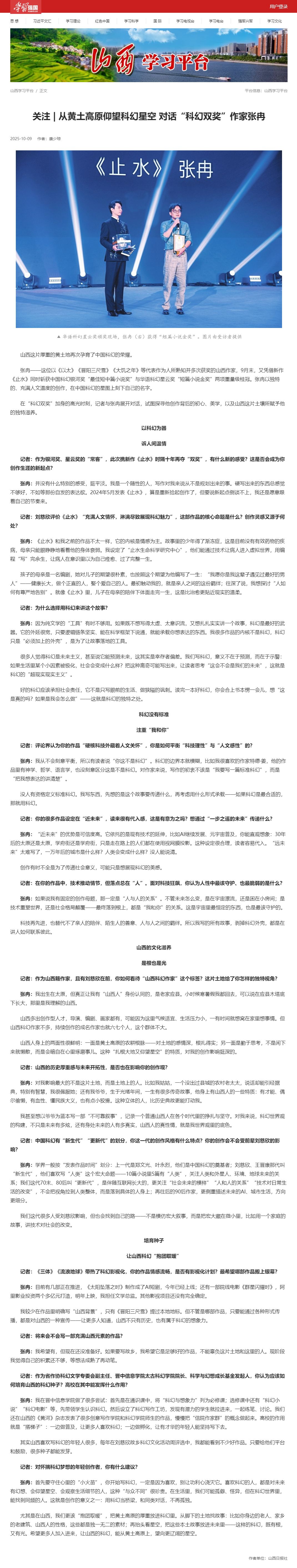 山西这片厚重的黄土地再次孕育了中国科幻的荣耀。