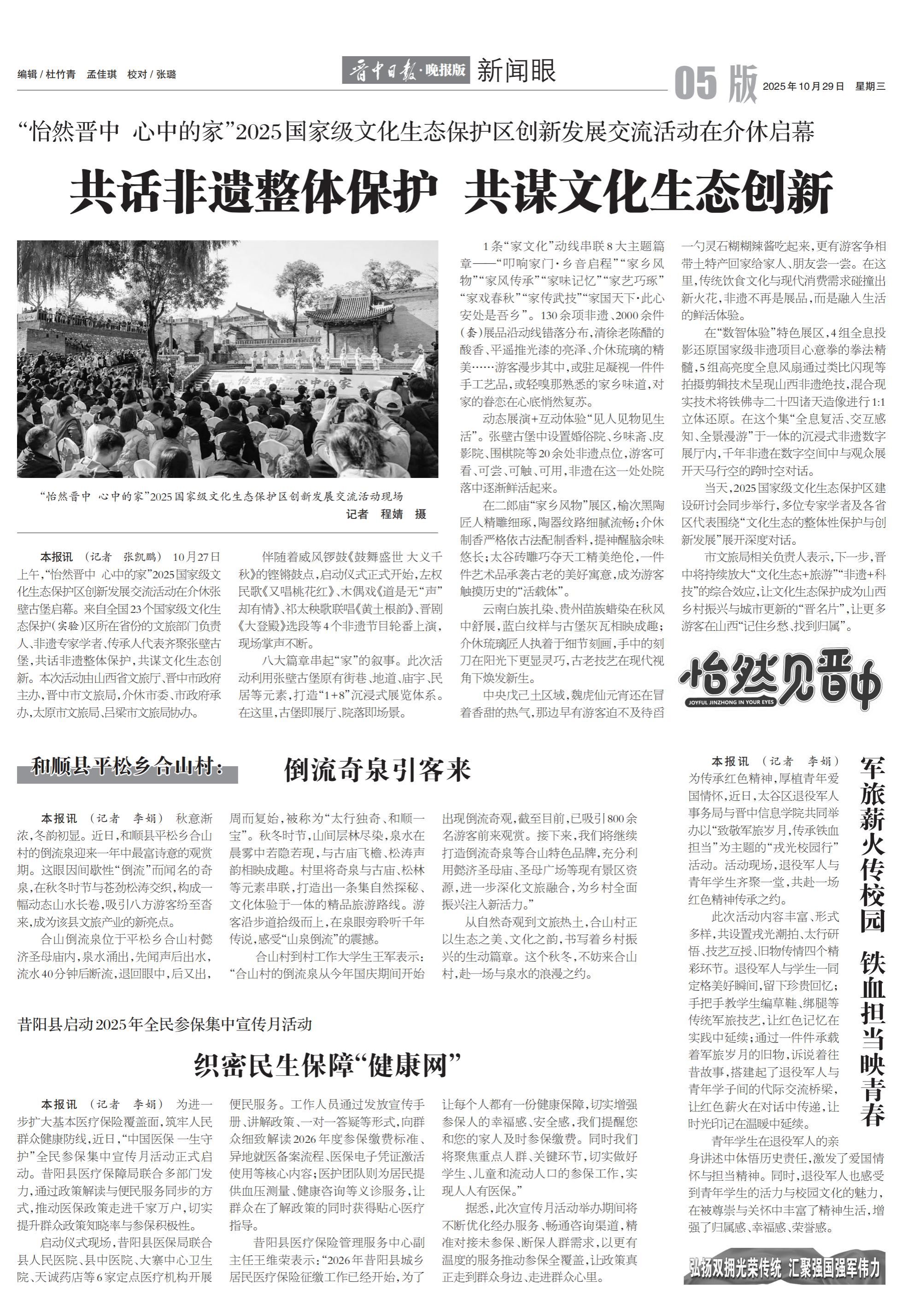 本报讯 (记者 李娟) 为传承红色精神,厚植青年爱国情怀,近日,太谷区退役军人事务局与晋中信息学院共同举办以“致敬军旅岁月,传承铁血担当”为主题的“戎光校园行”活动。活动现场,退役军人与青年学生齐聚一堂,共赴一场红色精神传承之约。