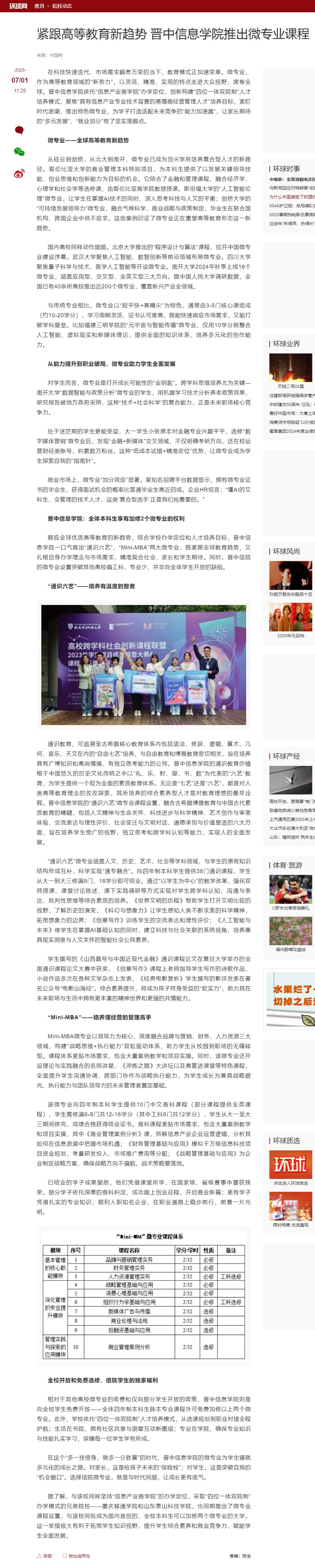 【环球网】紧跟高等教育新趋势 晋中信息学院推出微专业课程