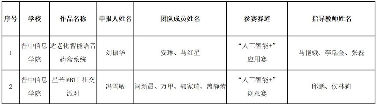 根据第十九届“挑战杯”全国大学生课外学术科技竞赛“人工智能+”专项赛参赛组织工作安排,拟推荐以下2项作品参加第十九届“挑战杯”全国大学生课外学术科技作品竞赛“人工智能+”专项赛。现予以公示,公示时间为2025年7月17日-19日,如有异议,请在公示期间实名予以反应。
