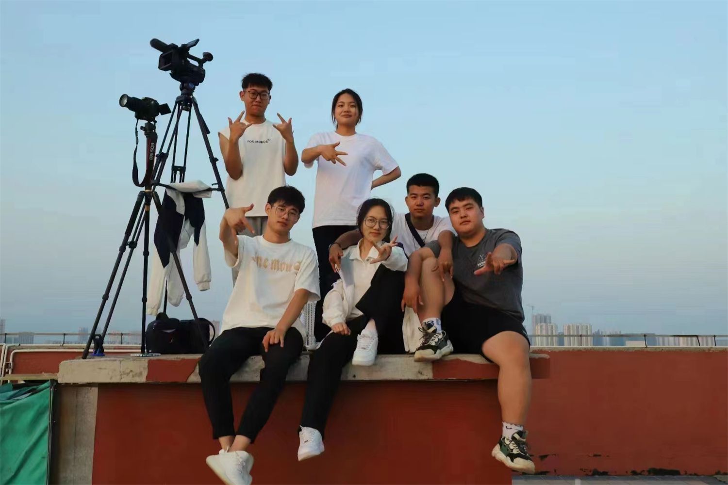 20236月底的一个普通清晨,时为团委影视工作室主任的王金涛(前排左一)和影视工作室的小伙伴们刚扛着摄影摄像设备,在艺术楼的天台完成了日出的延时拍摄。