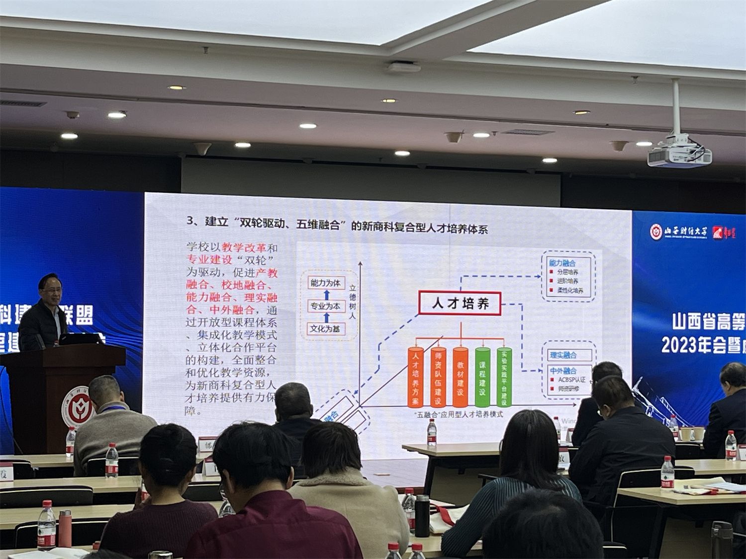 山西省高等学校新商科建设联盟2023年会暨虚拟教研室建设研讨会于11月17日在山西财经大学举办,参会人员为联盟常务理事单位、理事单位的分管教学副校长、教务处处长、教学管理人员、教师等,我校淬炼·国际商学院院长牛晋霞、经济与管理学院院长赵欣、淬炼·国际商学院会计与审计教研室主任程建波、经济与管理学院大数据管理与应用教研室主任贾政军及淬炼·国际商学院教师代表王一堃、张蕊、李玲参加了此次研讨会。