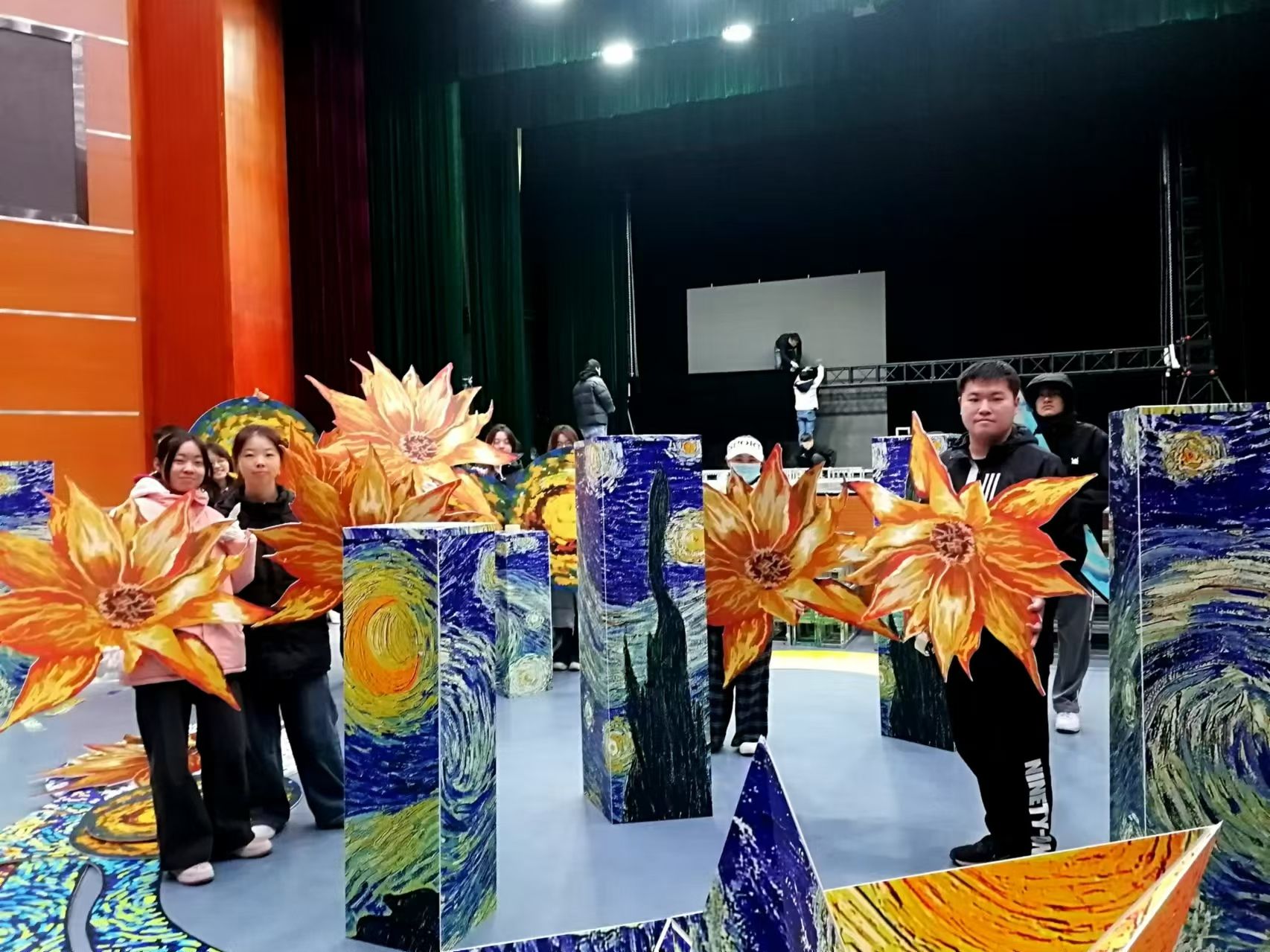 大学生艺术团舞美创意工作室,专注为校园演出打造视觉盛宴。团队下设四大核心组别:软件组用数字技术渲染光影特效;绘画组以笔触勾勒场景氛围;雕刻组雕琢细节,赋予道具艺术质感;模型组精准还原设计,构建立体舞台架构。从舞台搭建到道具制作,各小组协同创新,将创意转化为震撼的舞台实景,以匠心为每一场演出注入独特魅力,点亮青春艺术梦想。