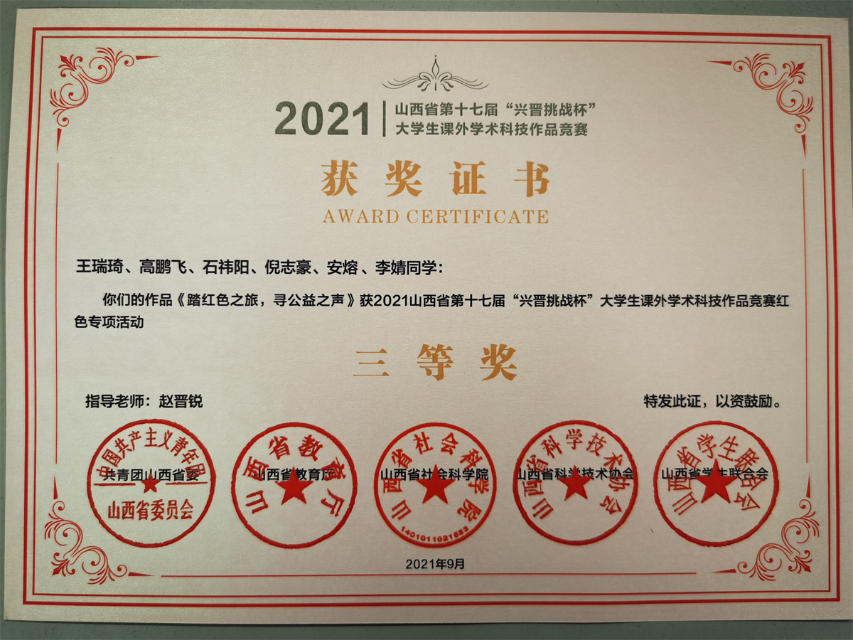 下一篇:艺术传媒学院“拾遗记”非遗传承在行动专项志愿服务队荣获“山西省优秀青年志愿服务集体”