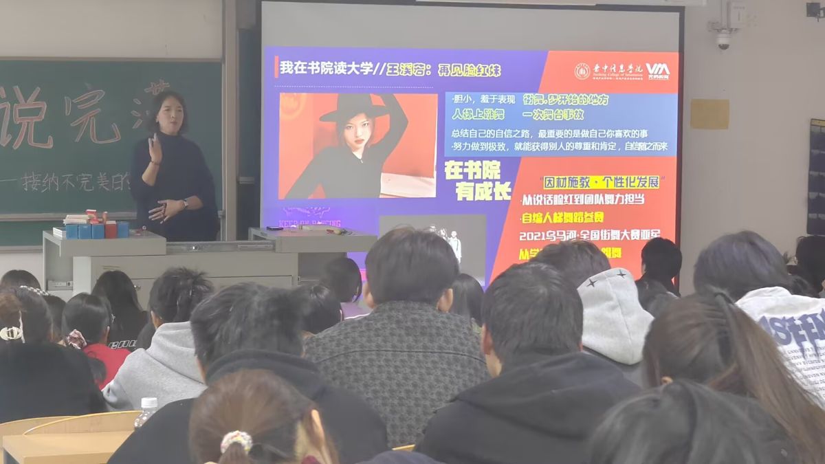现场还展示了两位同学的成长故事:岳佳乐从口齿不清到流畅演讲,从走路不稳到完整表演五套形意拳;王溪若从说话脸红到团队舞力担当,自编人梯舞蹈参赛并获得2021乌马河·全国街舞大赛亚军。这些故事生动诠释了“不完美”如何转化为成长的动力。