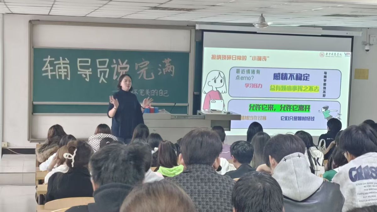 11月5日,信息工程学院数字专业在2号教学楼暖心举办以“接纳不完美的自己”为主题的辅导员说完满。李永娇老师以温暖而真诚的讲述,带领同学们展开了一场关于成长、自洽与勇气的深度对话。现场氛围轻松自然,如挚友围坐,娓娓道来,每一句言语都悄然触动心弦。